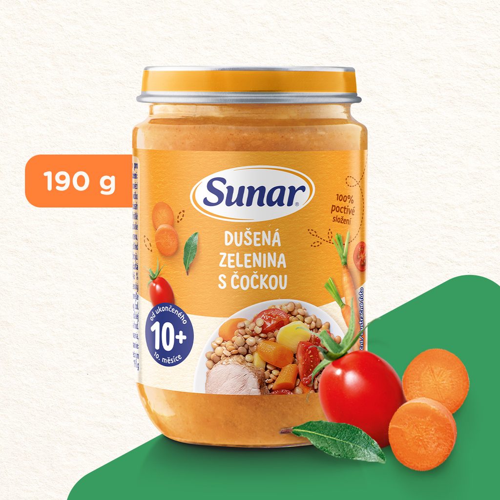 Sunar příkrm Dušená zelenina s čočkou je vhodný pro děti od ukončeného 10. měsíce. Během chvilky máte navařeno hravě a s chutí. Bez přidané soli, ze 100 % poctivých surovin v té nejvyšší baby kvalitě.