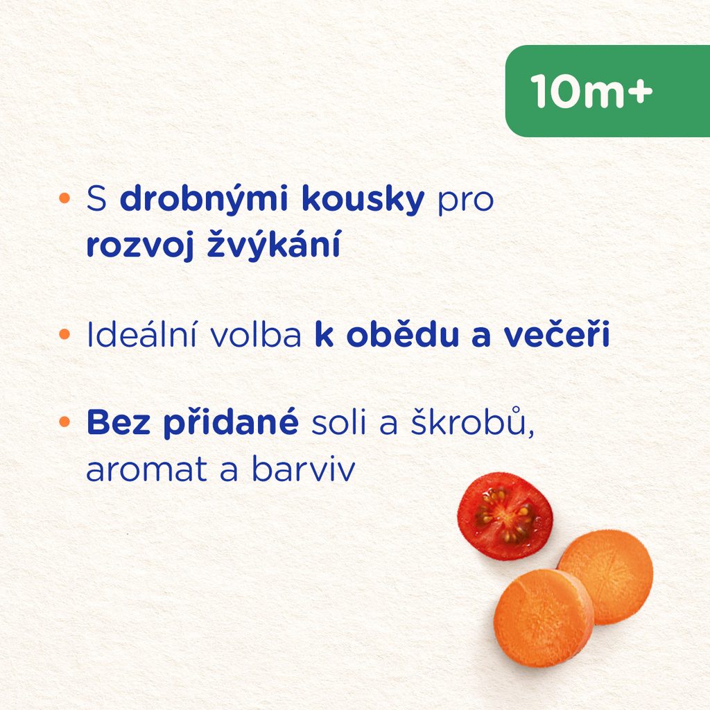 Regulovaný název: Dušená zelenina s čočkou. Zelenino-masový příkrm. Potravina pro zvláštní výživu.