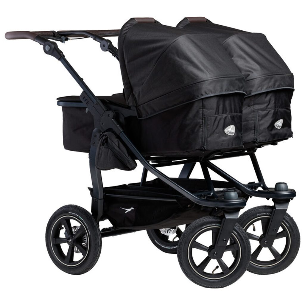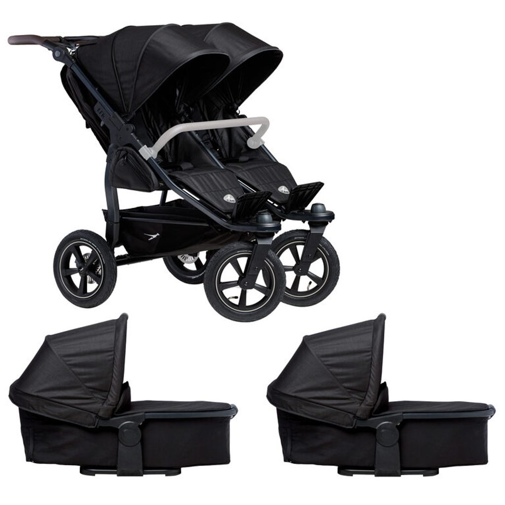 Můžete zvolit variantu se dvěma korbami pro dvojčata, dvěma sedáky nebo kombinaci korba + sedák pro sourozence různého věku. Kočárek byl testován na rychlost až 10 km/h, což z něj dělá ideální volbu i pro aktivní rodiče.