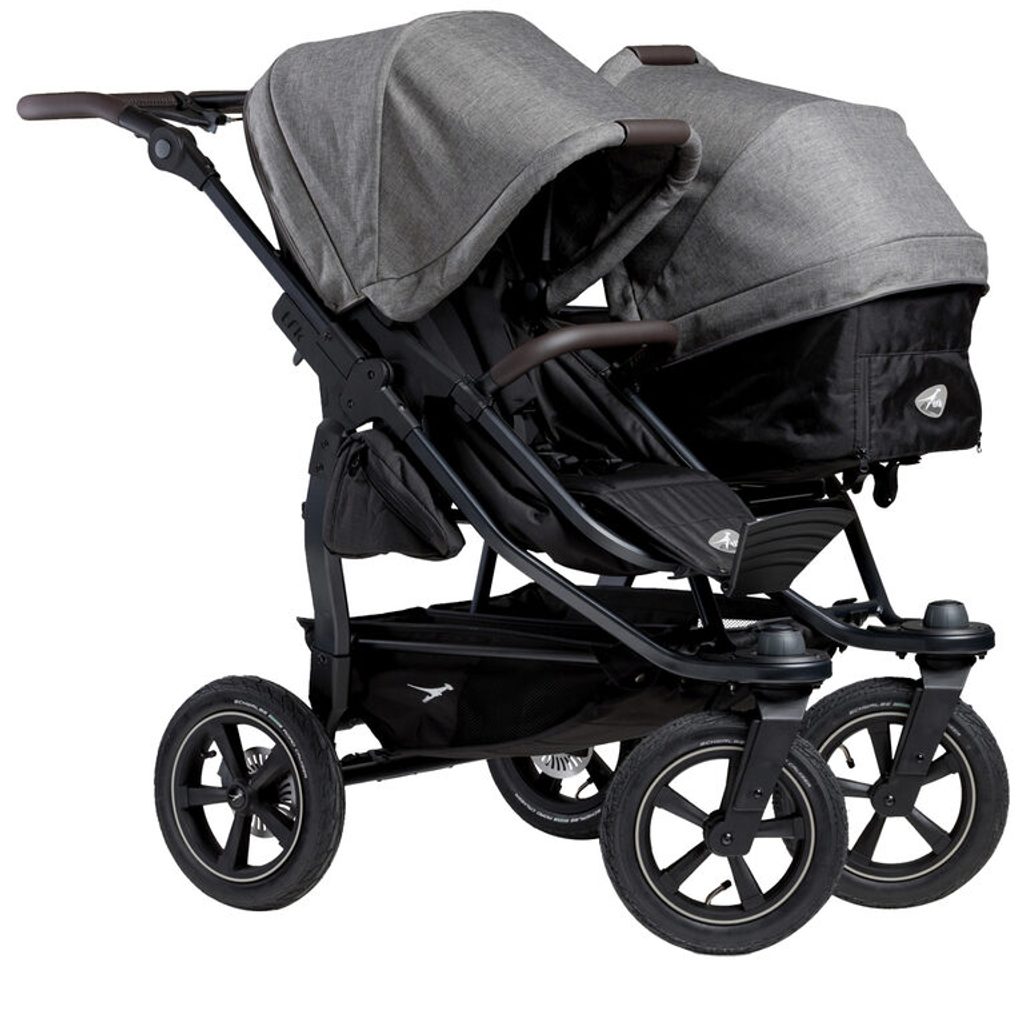 Konstrukce je nyní větší, lehčí, lépe odpružená a snadno ovladatelná i v náročném terénu. Díky chytrému systému uchycení lze jednoduše nacvaknout hlubokou korbu Duo2 Combi nebo sportovní sezení Stroller Seats Duo2. Můžete kombinovat dvě korbičky, dva sportovní sedáky nebo jejich variantu – ideální pro dvojčata i sourozence.