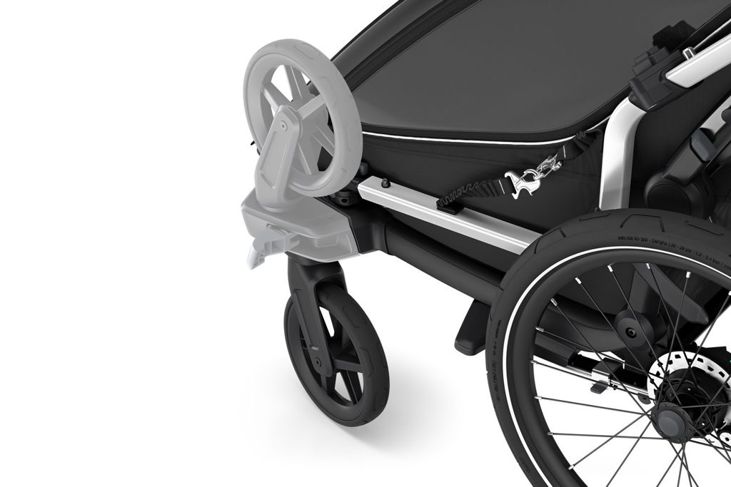 Vozík Thule Chariot Sport 2 je vyroben tak, aby trénink byl bezpečný, snadný a zábavný. Umožňuje vám snadno přecházet mezi jízdou na kole, chůzí a během. Rychlé otočení kola jednou rukou o 180 stupňů promění vozík za kolo během několika sekund v kočárek. Přepracované závěsné rameno je navíc vybaveno bezpečným nacvakávacím držákem, což zjednodušuje připevnění a přidává další úroveň ochrany prostřednictvím integrovaného zámku. Díky flexibilním možnostem nastavení sedaček pro jedno nebo dvě děti vozík Thule Chariot Sport uspokojí individuální potřeby každé rodiny.