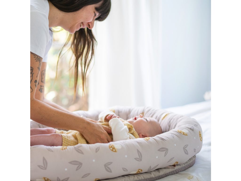 V prvních týdnech slouží hnízdo jako měkké „objímající“ lůžko, ve kterém se novorozenec cítí jistěji a snáze se zklidní i uspává. Okraje jemně ohraničují prostor a pomáhají miminku cítit se podobně bezpečně jako u maminky v náruči.