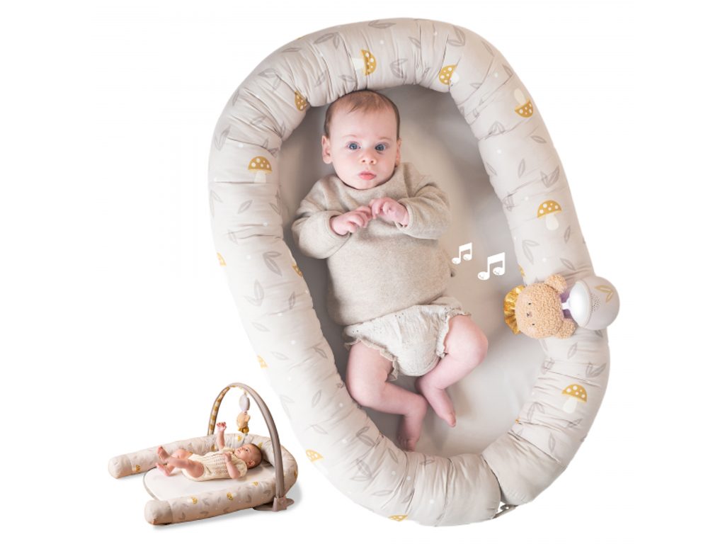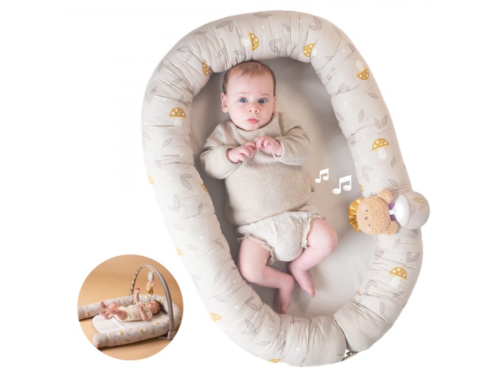 Hnízdo pro miminko Taf Toys vytvoří pro vaše děťátko útulný, měkký a bezpečný prostor od prvních dní života. Roste spolu s miminkem – od klidného odpočinku v uzavřeném hnízdečku až po pohodlné místo na hraní s hrazdičkou a hudebním medvídkem.