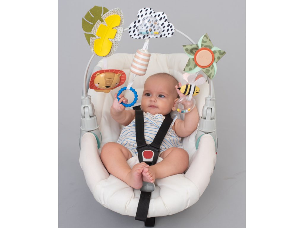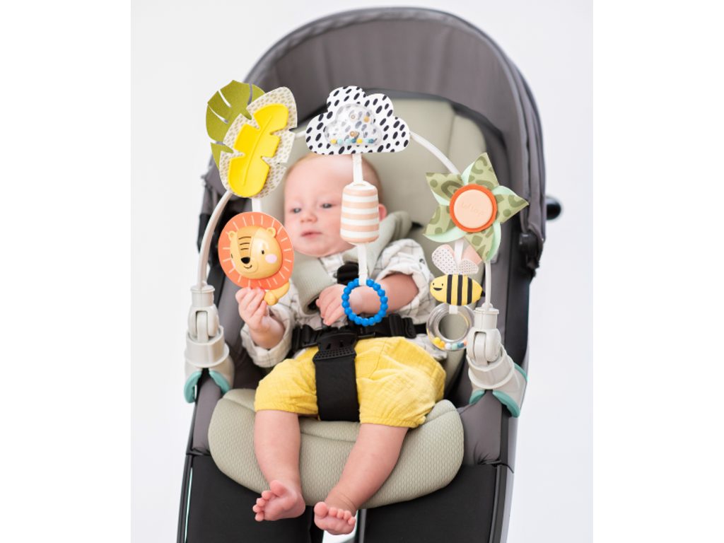 Hrazda je určena k připevnění na kočárek nebo autosedačku a zabaví vaše miminko na cestách. Hrazda nabízí dva způsoby použití pro dvě vývojová stádia dítěte: Od narození: zavěšené jemně chrasticí a pohybující se hračky upoutají pozornost ležícího dítěte. Od 5 měsíců: dítě začíná hračky aktivně tahat a zkoumat rukama. Hrazda dítě nejen zabaví, ale současně rozvíjí rozvíjí jeho jednotlivé smysly a motorické dovednosti. Měkkou a pružnou hrazdu připevníte s pomocí plastových klipsů k většině kočárků i autosedaček. Klouby umožňují nastavit sklon hrazdy dle potřeby. Vhodné od narození.