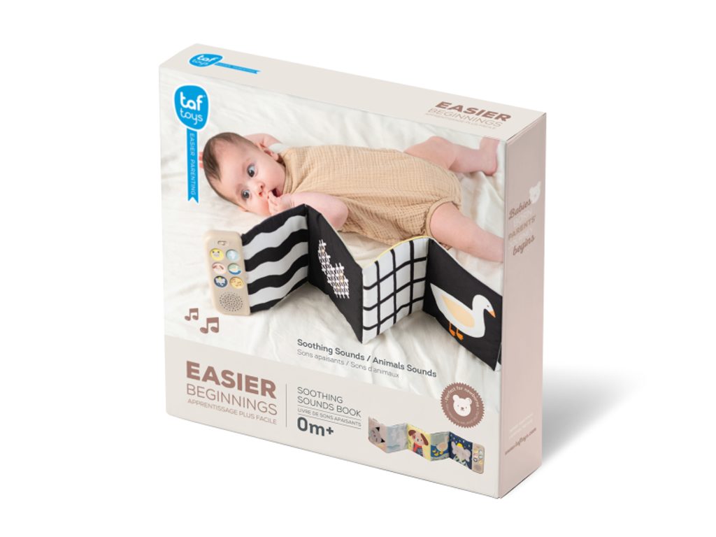 Oboustranná textilní knížka Taf Toys je uklidňující senzorická hračka, která zabaví miminko už od narození doma, v postýlce i na cestách v kočárku. Samostatně stojí, takže je ideální pro hraní na bříšku, a díky praktickým klipům ji snadno připnete tam, kde miminko potřebuje zábavu i pocit jistoty.