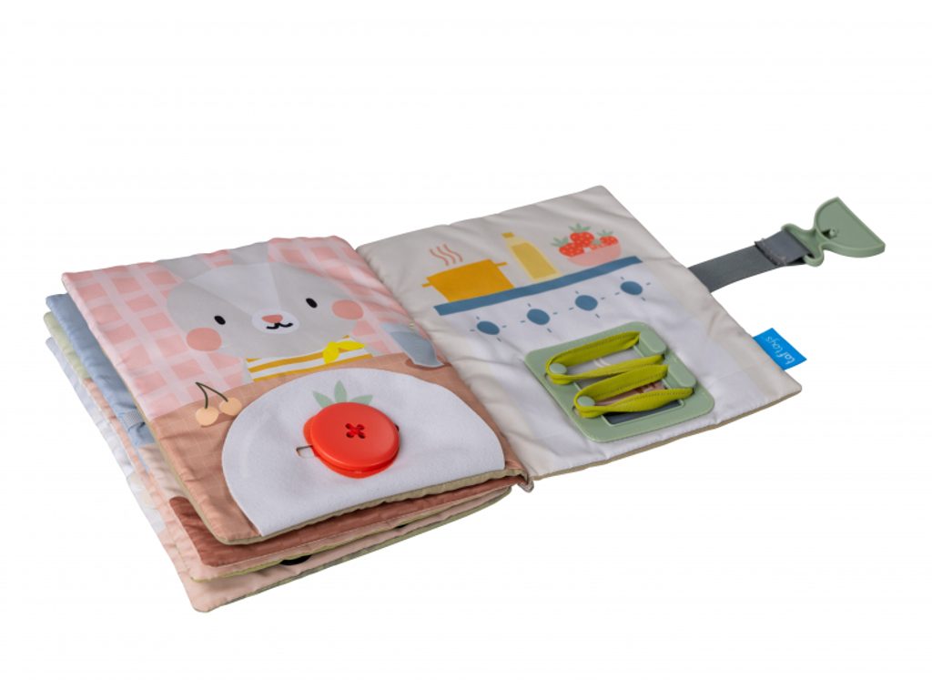 Jedinečná textilní knížka s krásnými ilustracemi nabízí dvanáct různých aktivit včetně zipů, přezek, tkaniček, knoflíků apod. Hraním s touto knížkou batole získává dovednosti, které mu např. usnadní samostatné oblékání a obouvání. Knížku využijete i pro učení dítěte barvám a prvním číslům. Knížka s aktivitami pomáhá vašemu dítěti rozvíjet jeho jemnou motoriku, koordinaci ruka - oko, obratnost a učí jej řešení problémů. Vhodné pro děti od 18 měsíců.