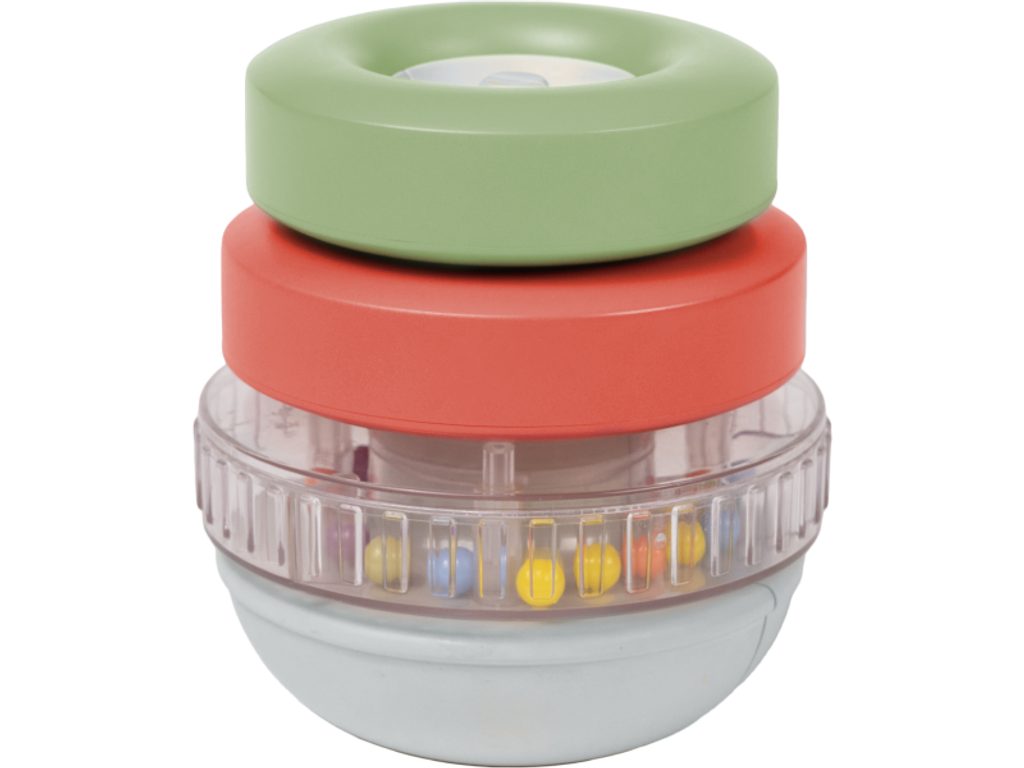 Chrastivý zvuk a otáčející se pyramida během jízdy podněcují dítě k pohybu, což posiluje svaly a rozvíjí základní pohybové dovednosti.