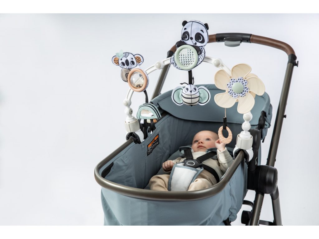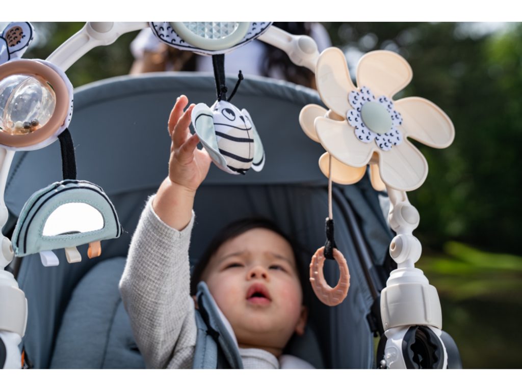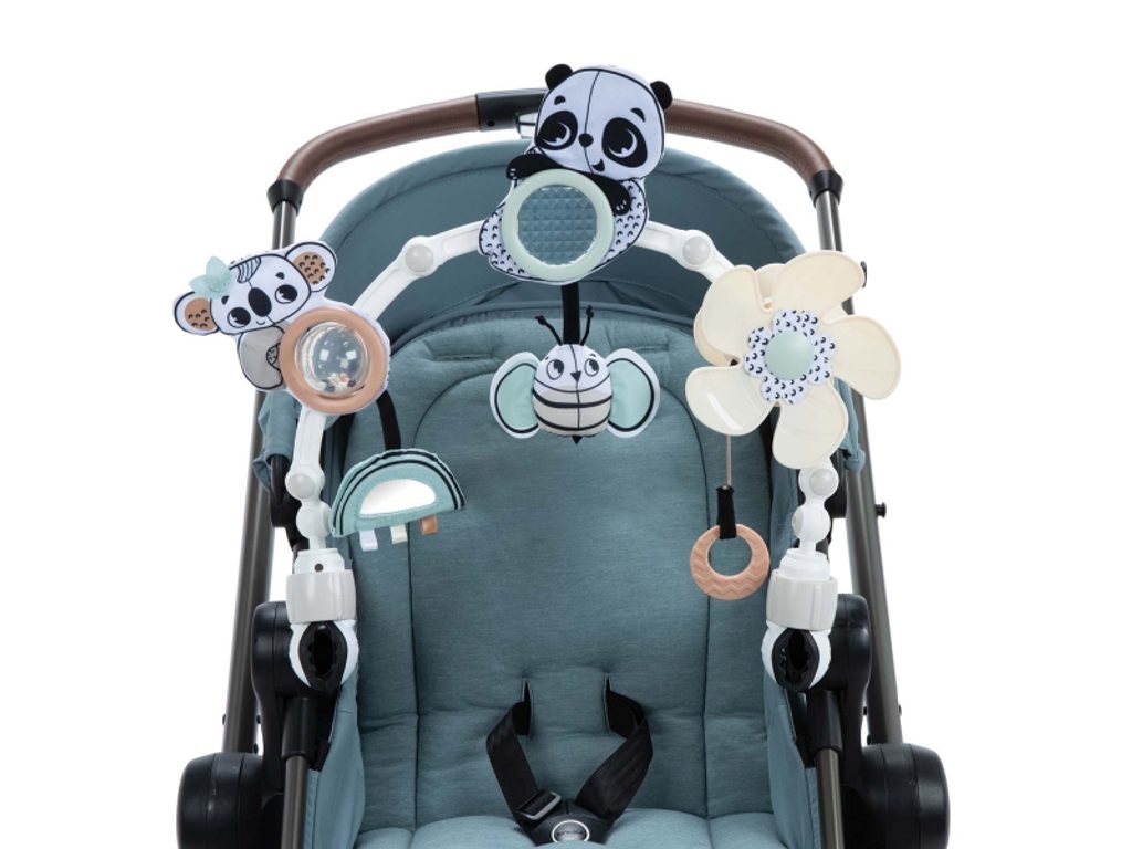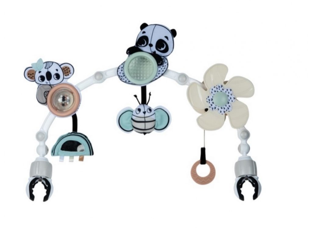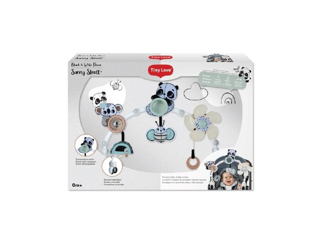 Hrazda Tiny Love je vhodná na kočárek, autosedačku či lehátko. Nabízí množství aktivit pro zabavení dítěte na cestách i doma, např. chrastítko, kousátko, otáčecí větrník nebo bezpečné zrcátko. Hrazda nabízí dva způsoby použití pro dvě vývojová stádia dítěte: Od narození: zavěšené jemně chrasticí a pohybující se hračky s výraznými černobílými motivy upoutají pozornost ležícího dítěte. Od 5 měsíců: dítě začíná hračky aktivně tahat a zkoumat rukama. Hrazda dítě nejen zabaví, ale současně rozvíjí rozvíjí jeho jednotlivé smysly a motorické dovednosti. Hrazdu snadno připevníte s pomocí plastových klipsů k většině kočárků i autosedaček. Klouby umožňují nastavit sklon hrazdy dle potřeby. Vhodné pro děti od narození.