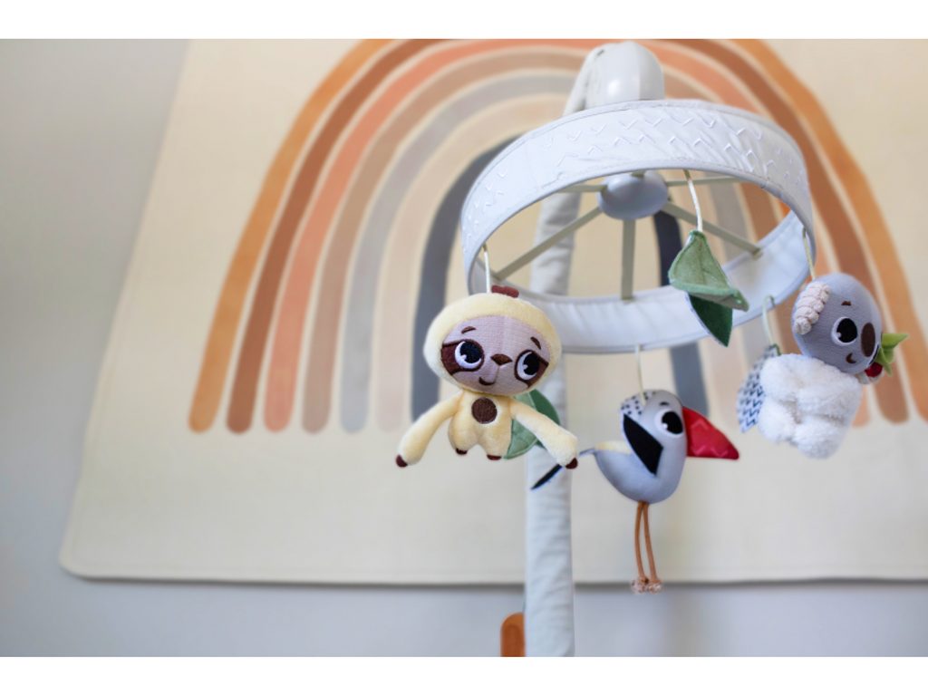 Hudební kolotoč Tiny Love v luxusním provedení s krásnými zavěšenými hračkami a vyšívanou konstrukcí utiší i zabaví vaše miminko v postýlce. Hudební box s nočním světýlkem nabízí 17 různých uklidňujících melodií v celkové délce 30 minut, 5 typů bílého šumu a jedinečný utišující zvuk. Možnost nastavení hlasitosti hudby i časovače na 10 / 20 / 30 minut. Zavěšené otáčející se hračky v podobě roztomilých zvířátek budou lákat dítě k pozorování a společně s hudbou či uklidňujícími zvuky miminko uklidní před usnutím. Kolotoč je vhodný od narození do cca 5 měsíců věku. Baterie 3xAA 1,5V nejsou součástí výrobku.