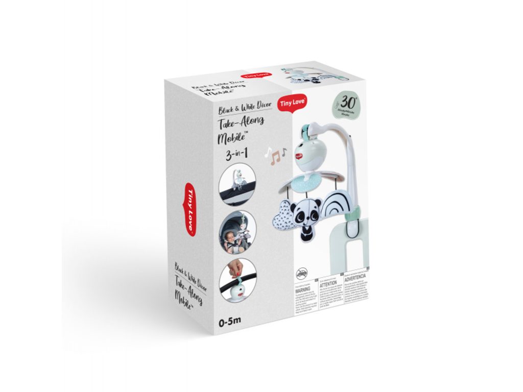 Hudební kolotoč Tiny Love hraje až 30 minut 5 různých melodií. Pozornost dítěte upoutají otáčející se hračky ve vysoce kontrastním černobílém provedení. Kolotoč nabízí tři různé způsoby uchycení: univerzální úchyt je vhodný např. na cestovní postýlku, klip je ideální na uchycení na kočárek, pásek se suchým zipem umožňuje uchycení na autosedačku. Kolotoč tak vaše dítě zabaví kdekoli na cestách. Baterie 3× AA nejsou součástí. Vhodné od narození do 5 měsíců.
