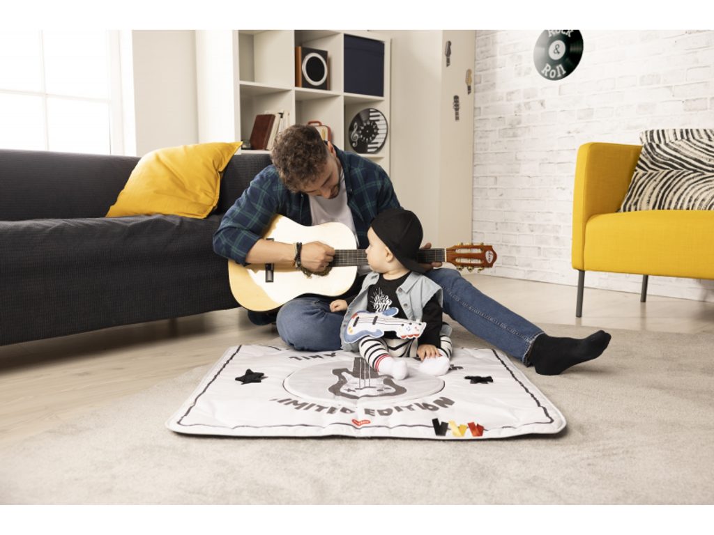 První kytara pro malé rockery a rockerky je dokonalým společníkem, který vašemu dítěti přinese spoustu zábavy i na cestách! Vyrobena z měkkého textilního materiálu, je bezpečná a příjemná na dotek. Po zmáčknutí přehrává 7 různých rockových melodií a zvuků, které stimulují sluch a podněcují radost z hudby.