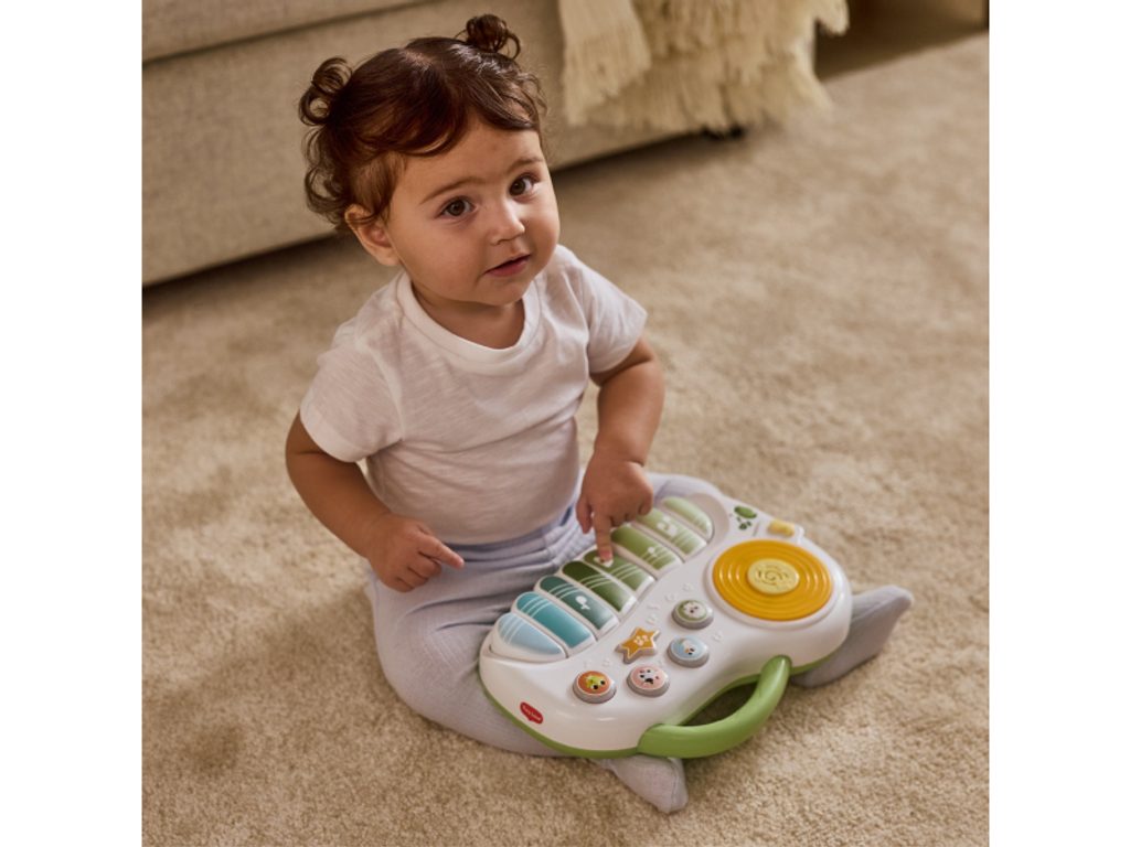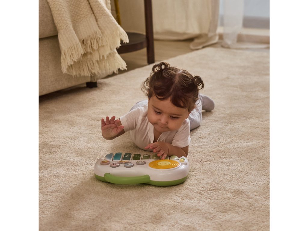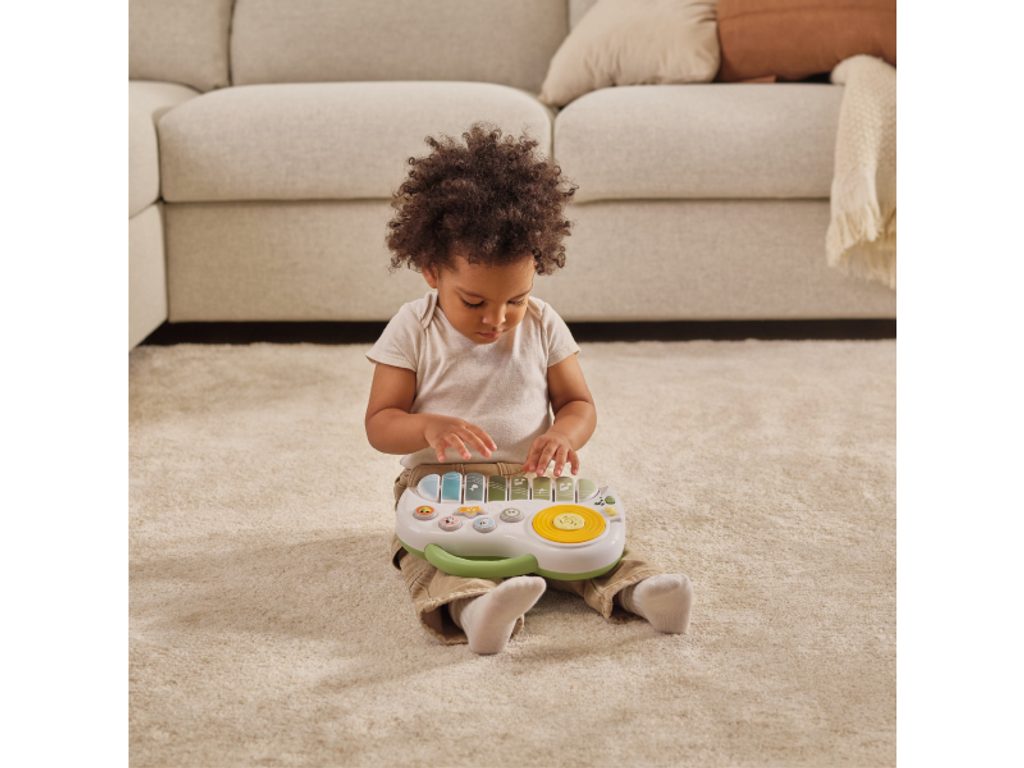 Hudební piáno Tiny Love Farmers Funday je interaktivní hračka, která dětem od 6 měsíců zábavnou formou otevírá svět hudby, rytmu a zvuků přírody. Čtyři režimy hry, světelná tlačítka a veselé zvuky zvířátek udrží miminko v pozornosti a zároveň nenápadně rozvíjejí jeho schopnosti.