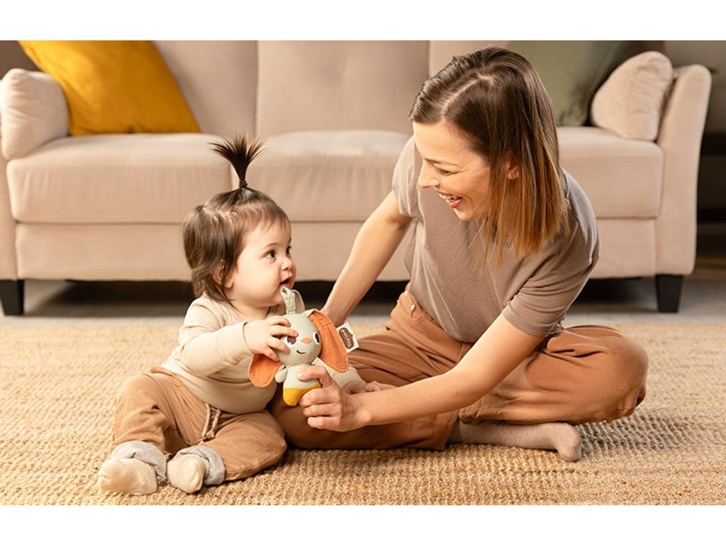 Roztomilý králíček Tiny Love pomáhá miminkům rozvíjet zvídavost a objevovat svět kolem sebe. Hračka navržená s láskou a péčí odborníky na vývoj dítěte podporuje emoční rozvoj miminka a dodává mu pocit bezpečí. Pozornost dítěte upoutají kontrastní barvy, jemné chrastění i různorodé textury. Díky poutku můžete hračku snadno zavěsit na kočárek či autosedačku, aby provázela vaše dítě i na cestách. Hračka je součástí udržitelné kolekce Tiny Love Garden of Adventures, která byla vytvořena s láskou a péčí o naši planetu. Kolekce, inspirovaná výtvory přírody, je navržena tak, aby podporovala dítě ve vývoji a objevování světa kolem sebe. Vyrobeno z materiálů odpovědně získaných z odpovědných zdrojů, které splňují nejvyšší standardy udržitelnosti a jsou certifikovány dle standardu OEKO-TEX® STANDARD 100. Rozměry: 19 x 15 cm Složení: bavlna, recyklovaný polyester Vhodné pro děti od narození.