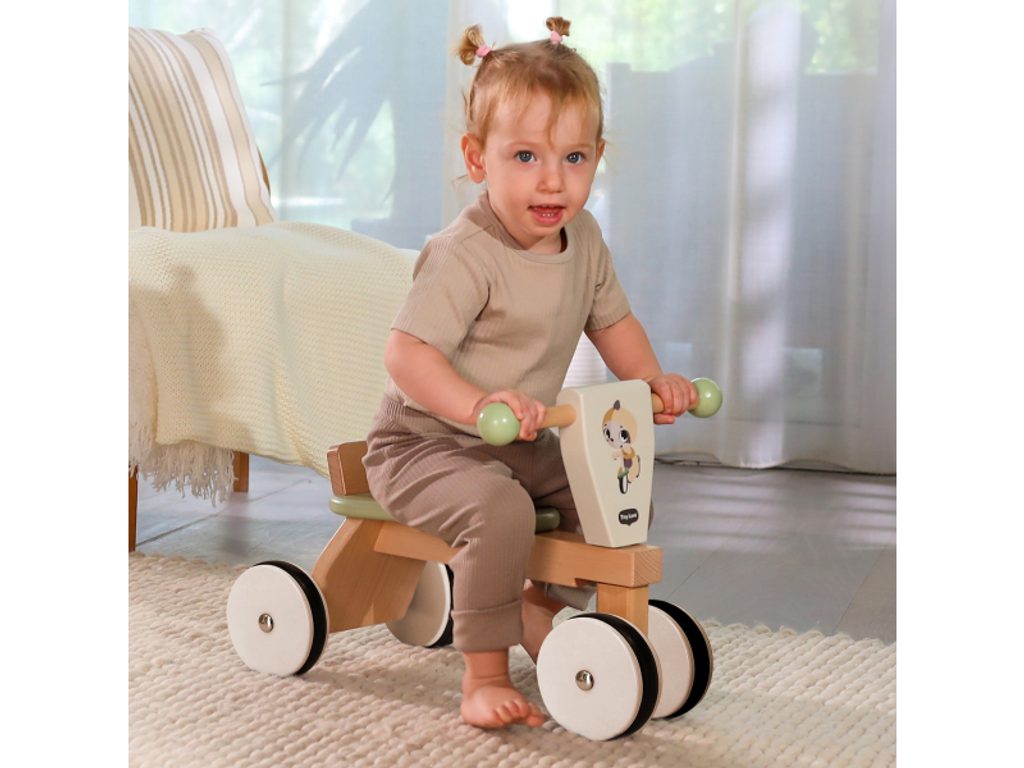 Dětské odrážedlo v kvalitním dřevěném provedení v podobě tříkolky nabízí stabilitu, pohodlné široké sedadlo s opěrkou a pohodlná řidítka. Pogumovaná kola zaručují hladkou jízdu a chrání podlahu před poškrábáním. Jízda na odrážedle stimuluje rozvoj smyslu pro rovnováhu dítěte a rozvíjí jeho hrubou motoriku i kognitivní dovednosti. Rozměry: 49 x 33 x 26,5 cm Hmotnost: 3,4 kg Vhodné pro děti od 18 měsíců do 3 let.