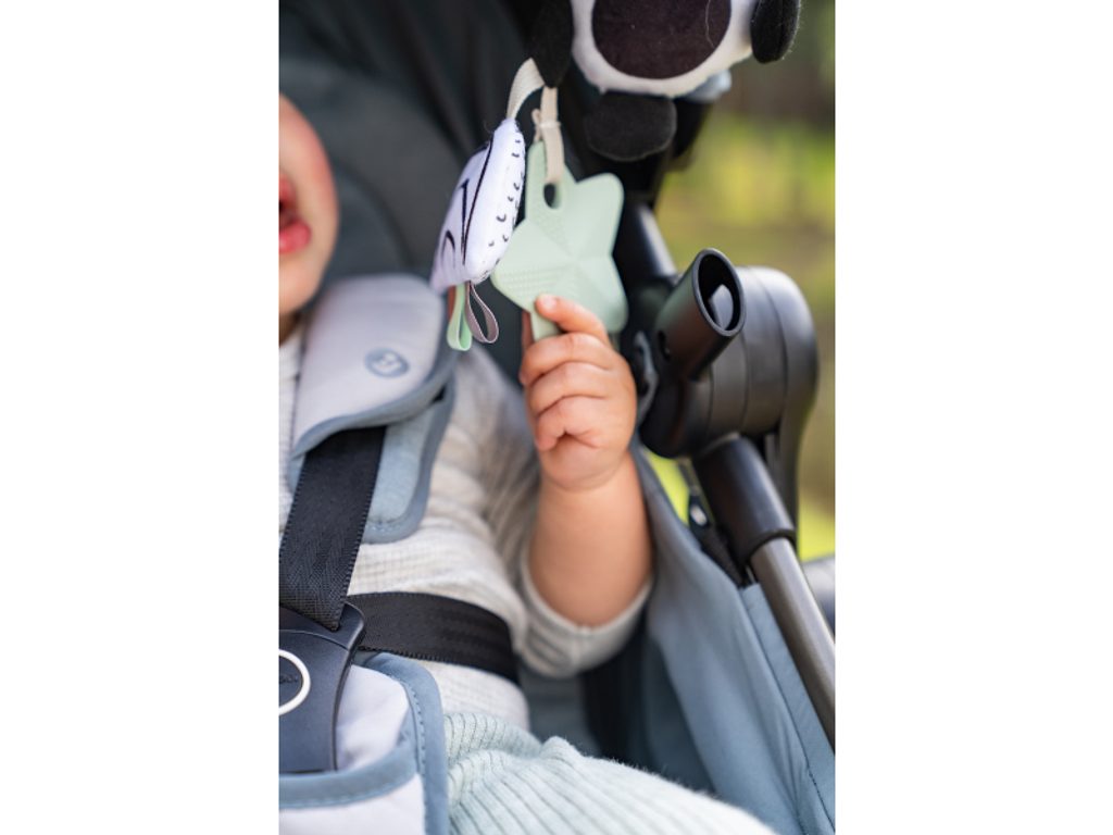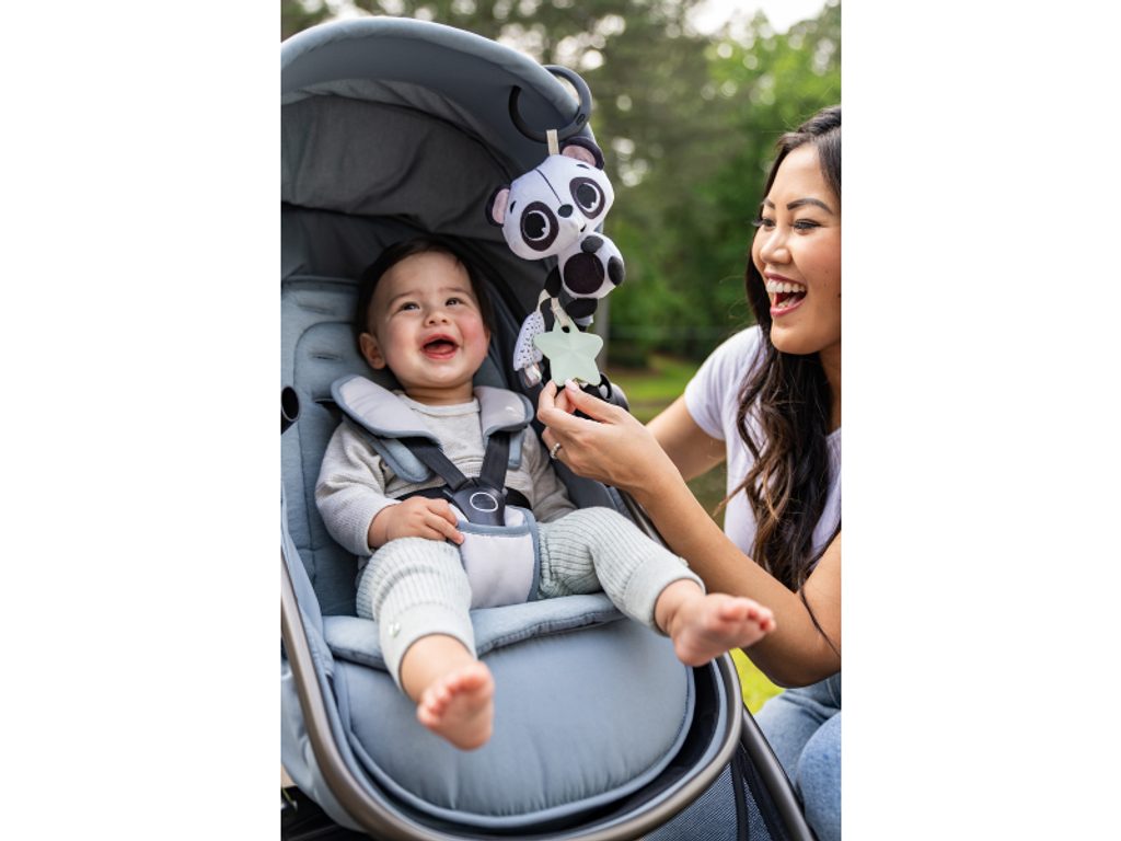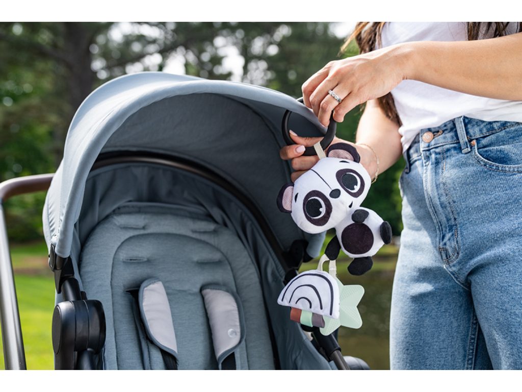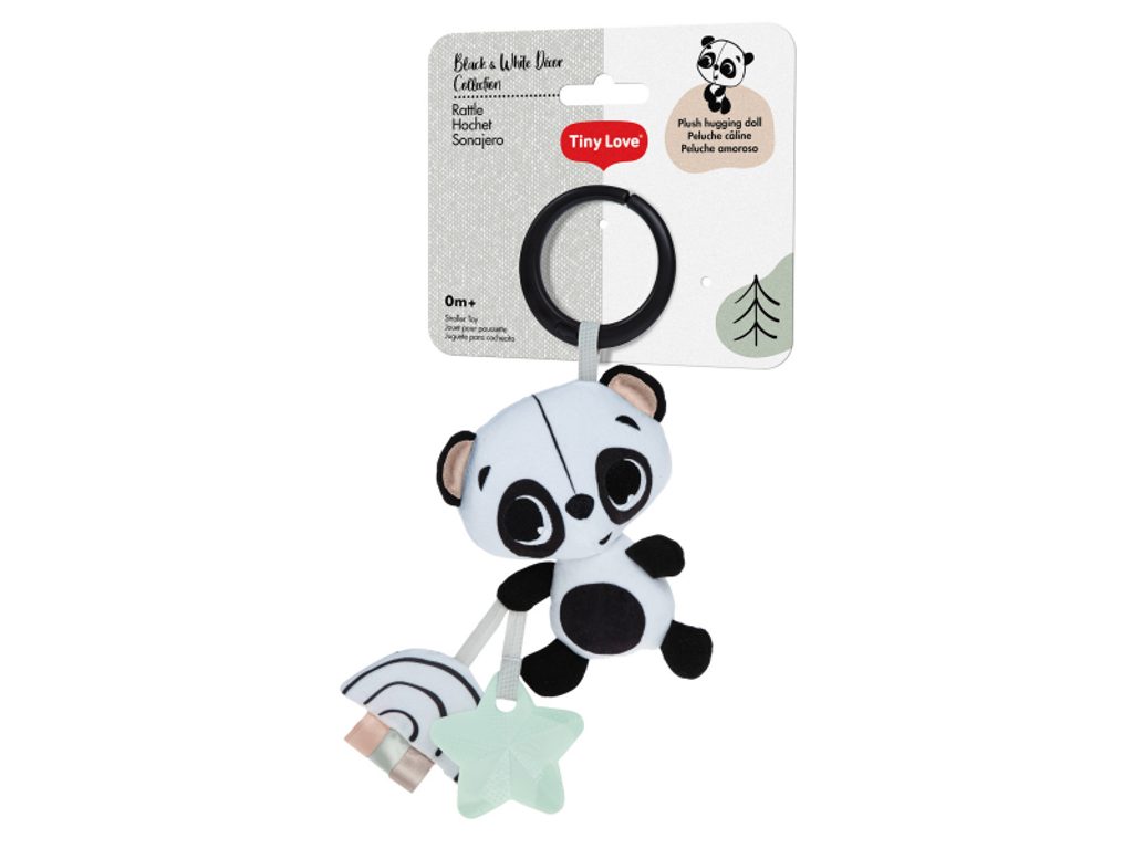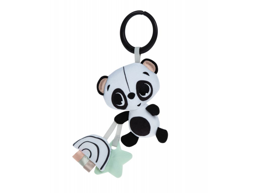 Měkká hračka v podobě roztomilé pandy při pohybu jemně chrastí. Různorodé textury na hračce lákají dítě ke zkoumání. Kroužek umožňuje snadné zavěšení na autosedačku, kočárek či potýlku. Rozměry: 15 x 12 x 7,5 cm Vhodné pro děti od narození.