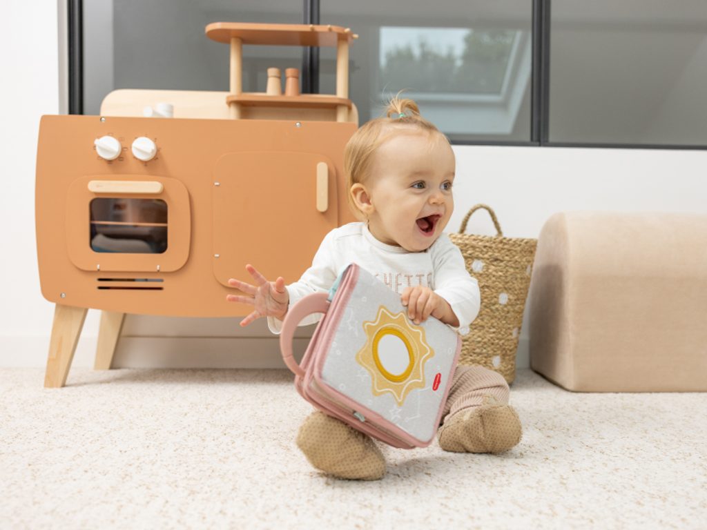 Textilní závěsná knížka Tiny Love Unicorn Wonderlands s pohádkovým motivem jednorožce nabízí miminku pestrý svět smyslového objevování. Je navržena tak, aby přirozeně rozvíjela dětské dovednosti už od narození. Různé textury, kontrastní tvary a hravé detaily podporují zrakové vnímání, jemnou motoriku i první pokusy o komunikaci. V knížce najdete jednorožce s šustivým ocasem, bezpečné zrcátko ve tvaru sluníčka, hvězdičku s texturami, plyšový obláček, pískací měsíc, šusticí duhu se schovávačkou i barevné saténové stužky. Knížka je ideální na doma i na cesty – snadno ji s pomocí závěsného kroužku připevníte ke kočárku, autosedačce nebo hrazdě na hrací dece. Rozměry: 15 × 17,8 × 3 cm Vhodné pro děti od narození.