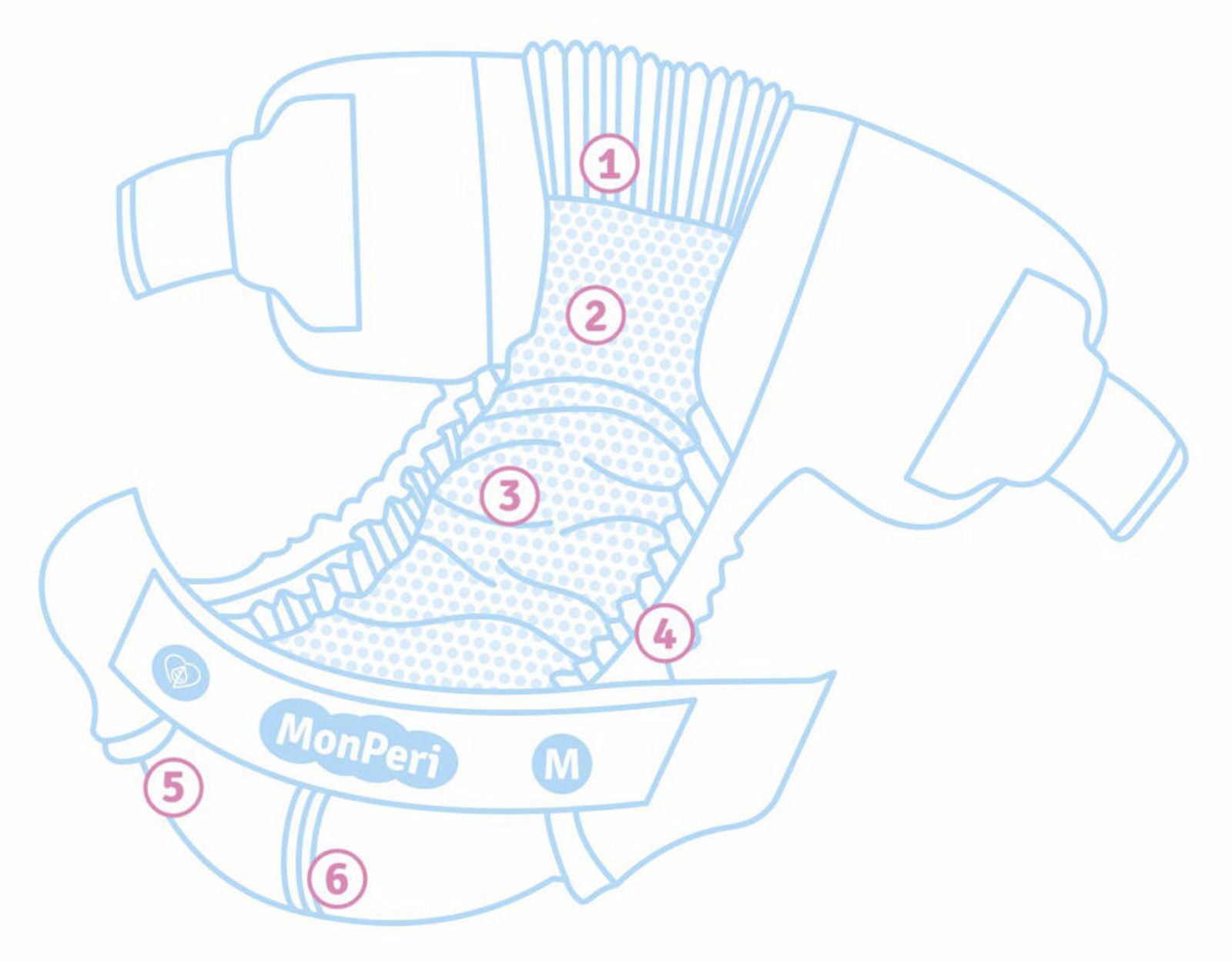 Složení plenky MonPeri Eco Comfort S 3–6 kg