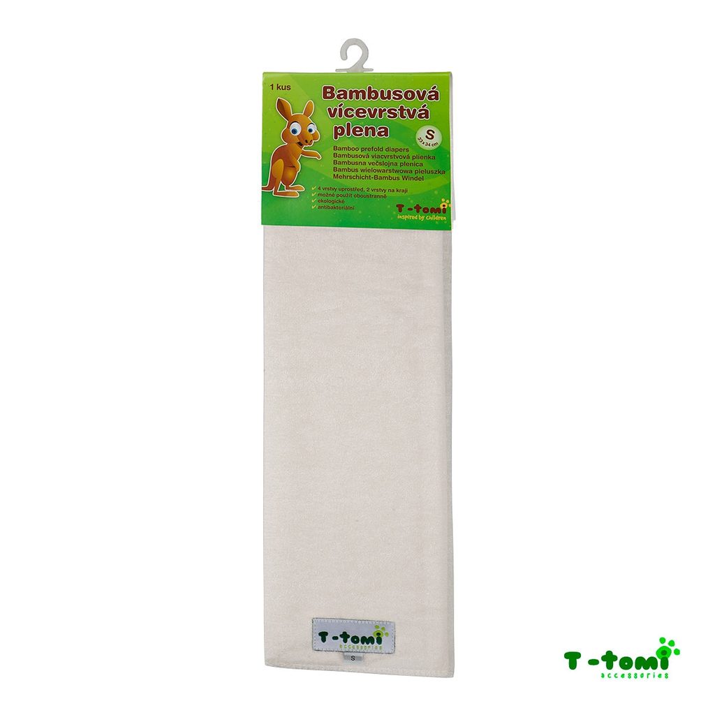 Vícevrstvé pleny T-tomi vyrobené z jemného bambusového froté mají 4 vrstvy uprostřed a 2 vrstvy na okrajích. Složením tedy získáte 8 savých vrstev. Vícevrstvé pleny jsou velmi univerzální, je možné je použít narovno do svrchních kalhotek, do kapsových plenek nebo pro kalhotkový sklad se snappi sponkou.