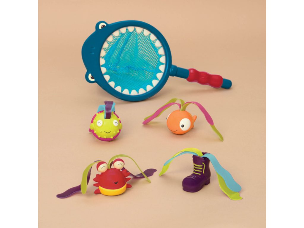 Potápějí se vaše dětí rády? Pak budou nadšené z tohoto originálního podběráku ve tvaru žraloka a čtyř hraček pro potápění. Vhoďte hračky na dno bazénu a pokuste se je vylovit podběrákem nebo chytit rukou za vlající pásky. Rozměry: 36×18×5 cm. Vhodné pro děti od 3 do 8 let.