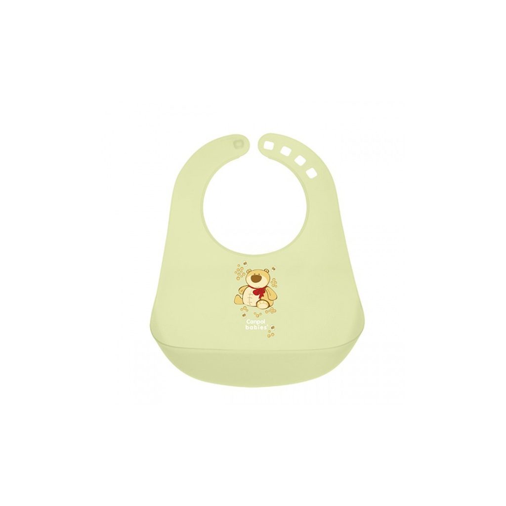 Plastový bryndák s velkou kapsou, která zadržuje zbytky pokrmu.