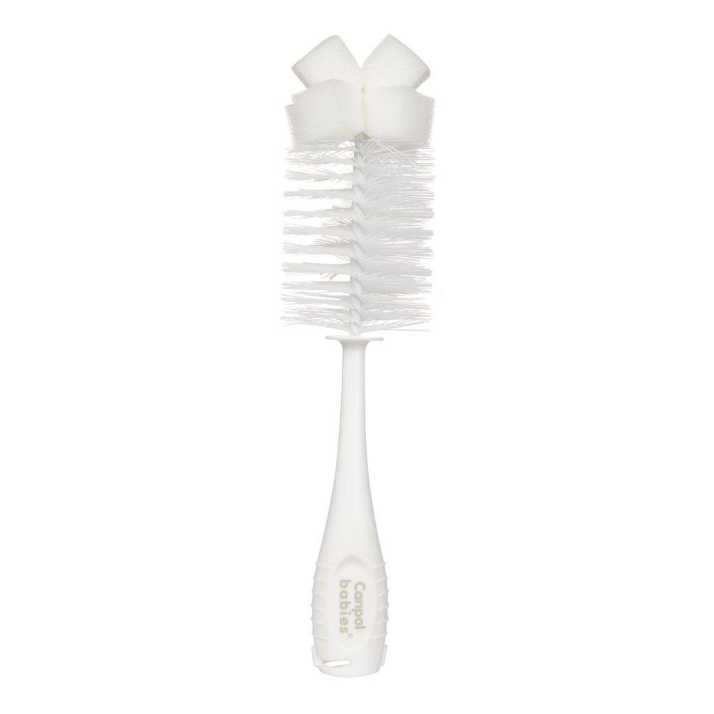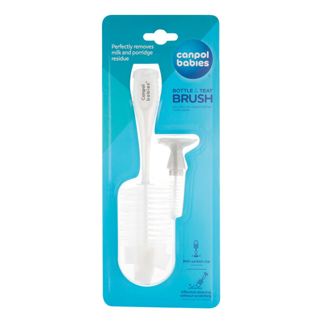 Speciálně tvarovaný kartáč s kartáčkem v rukojeti je určen na čištění láhví a saviček před jejich sterilizací. Přísavka umožňuje stabilní postavení či zavěšení kartáče s kartáčkem.