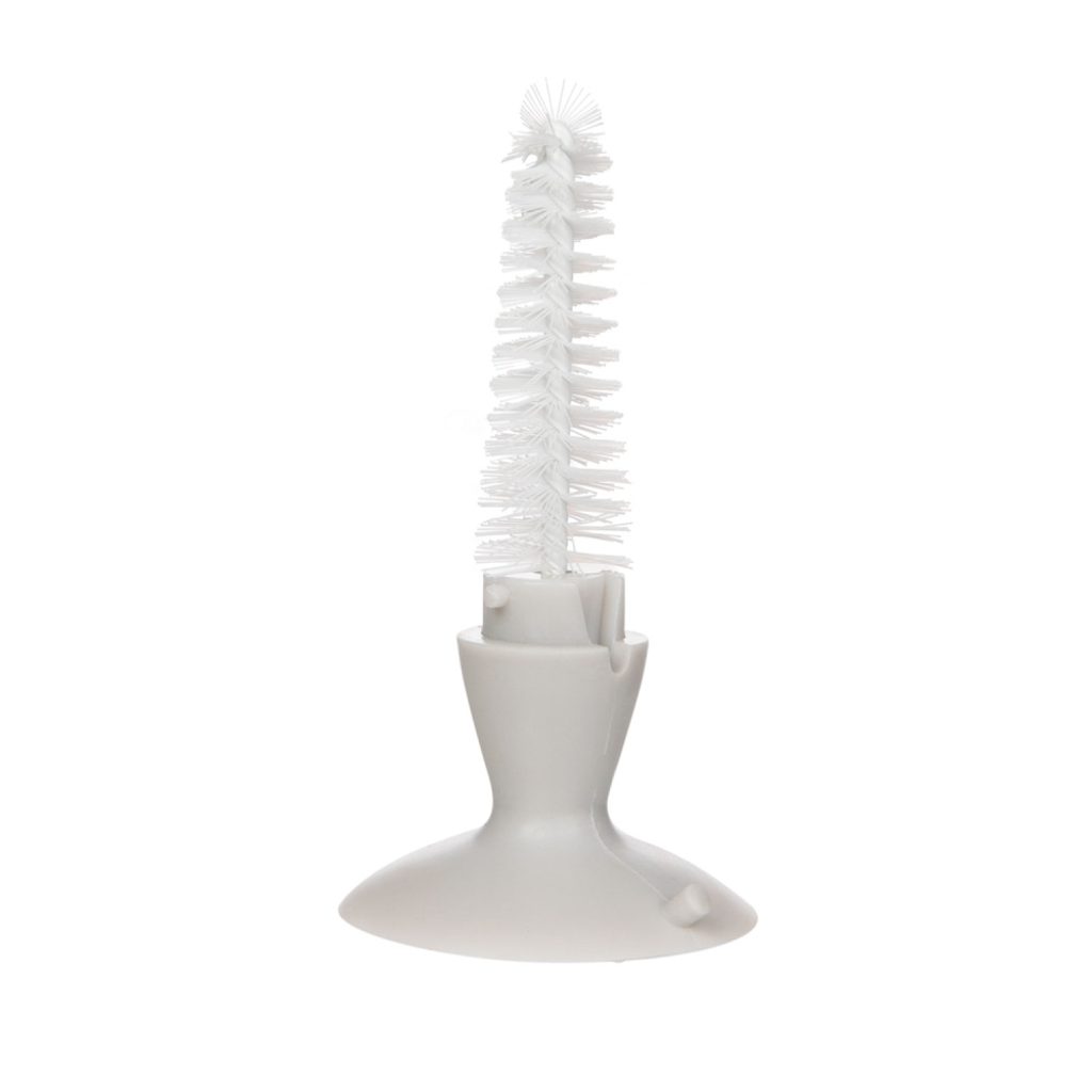 Speciálně tvarovaný kartáč s kartáčkem v rukojeti je určen na čištění lahví a saviček před jejich sterilizací. Přísavka umožňuje stabilní postavení či zavěšení kartáče s kartáčkem.
