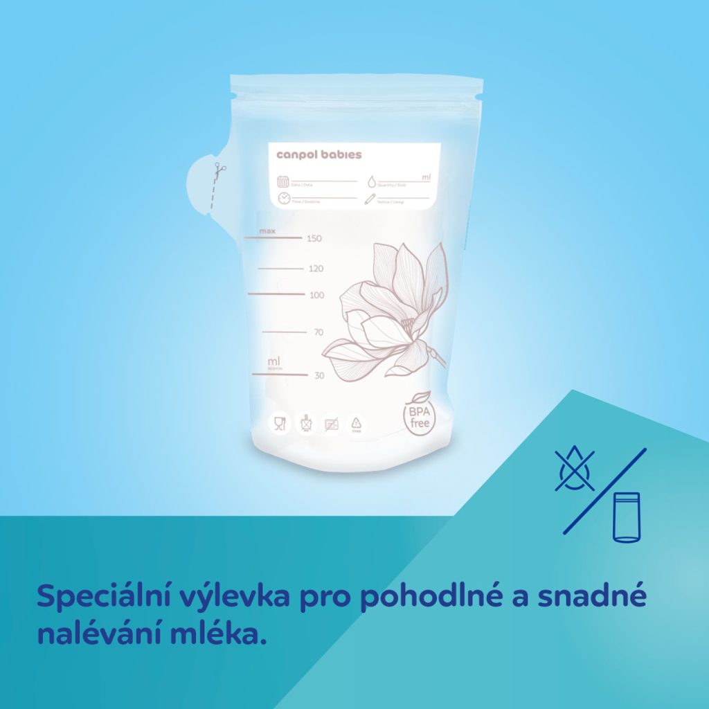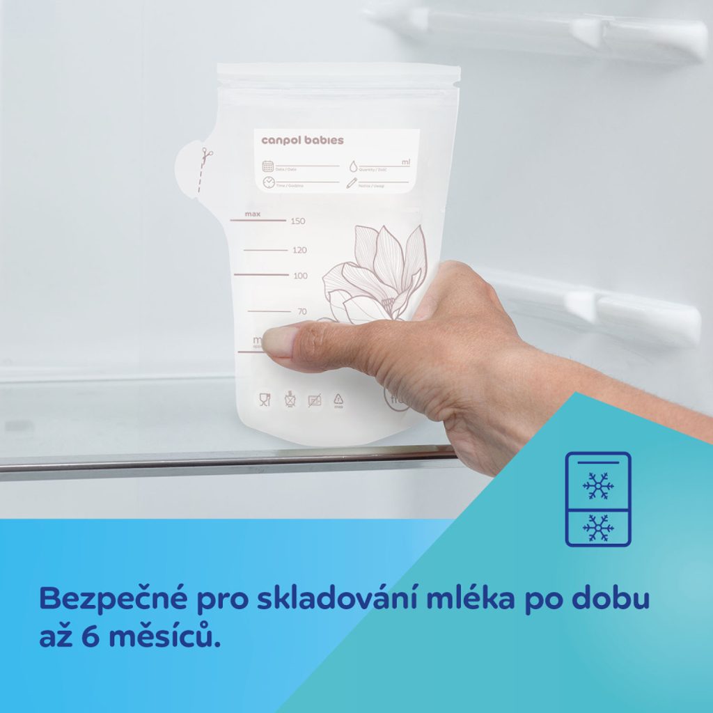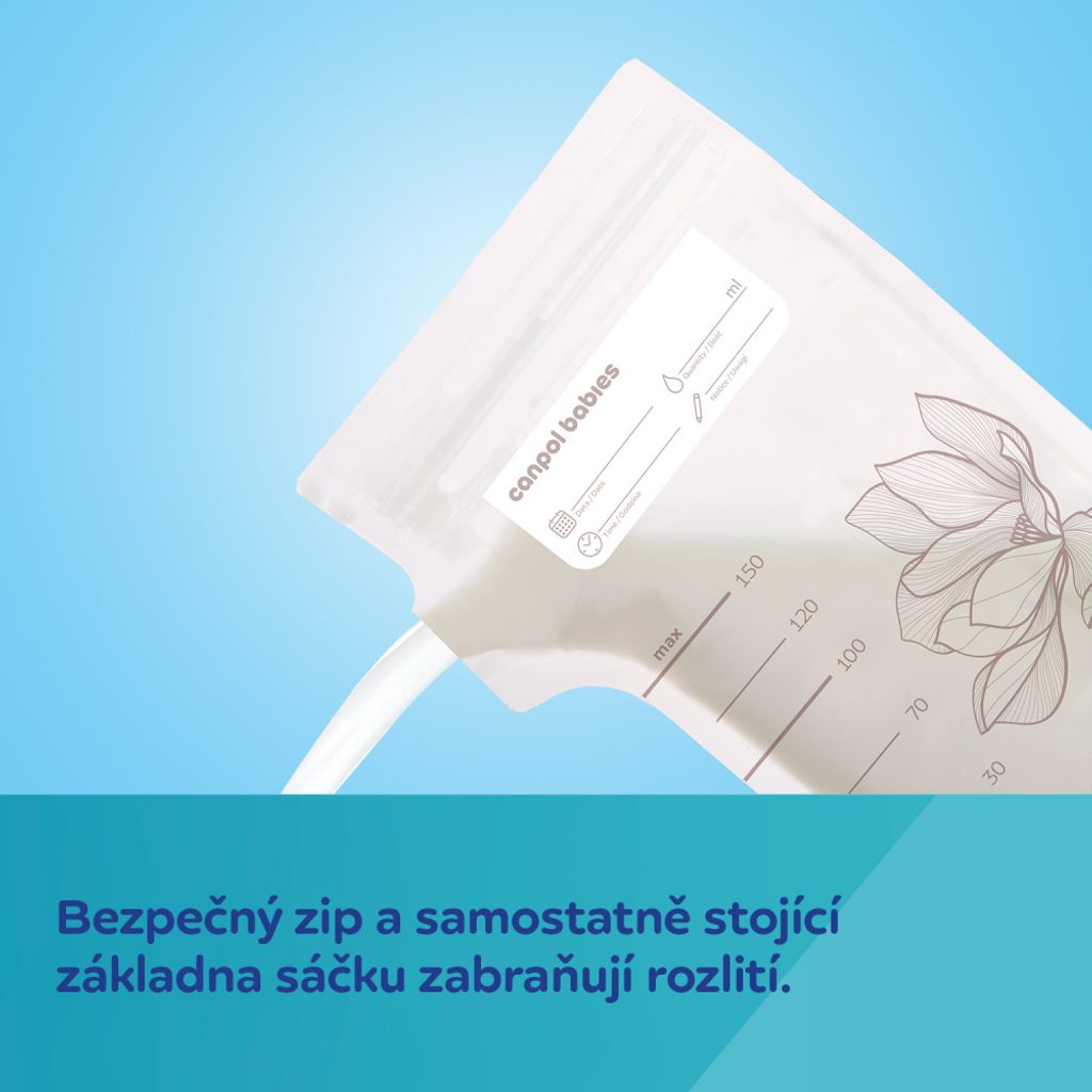 Sáčky jsou určeny k uchovávání odsátého mléka v lednici nebo mrazničce. Umožňují kvalitní dlouhodobé uchovávání mléka. Jsou vyrobeny z materiálu, který je určen ke styku s potravinami. Každý sáček je sterilizován gamma zářením. Konstrukce sáčku umožňuje uložení ve svislé poloze bez rizika rozlití, samolepící etikety jsou určeny k čitelnému označení sáčku. V balení 20 kusů.