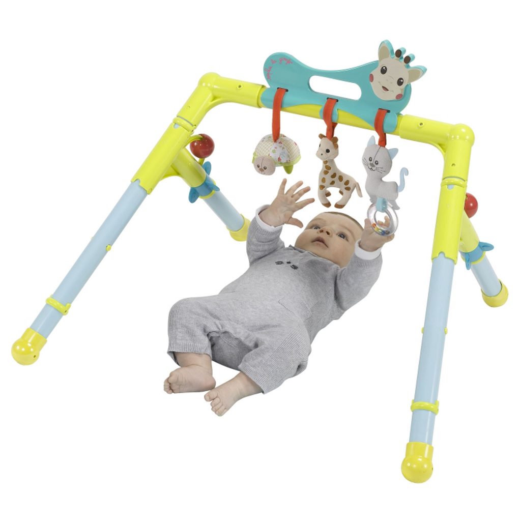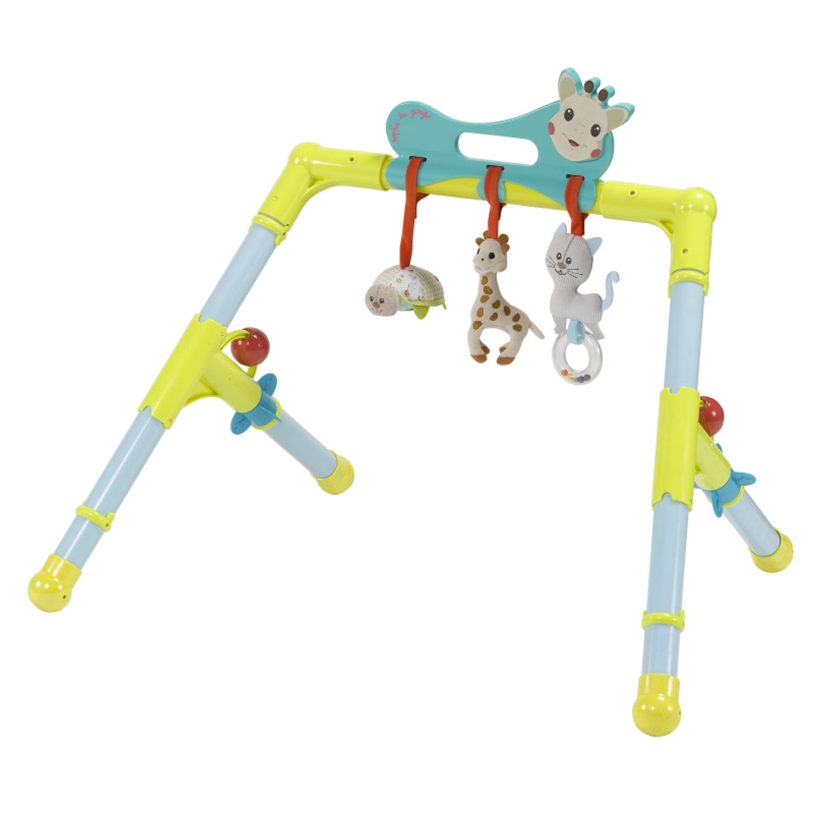 Hrazdička obsahuje několik aktivit k objevování: pestré barvy, velké množství materiálů a tvarů pro rozvoj hmatu, Žirafa Sophie s jemnou rolničkou v bříšku, kocour Lazare s kulatým chrastítkem a barevnými korálky, želva Margot se zrcátkem, ve kterém se dítě může pozorovat, 2 otáčení koule a květinky.