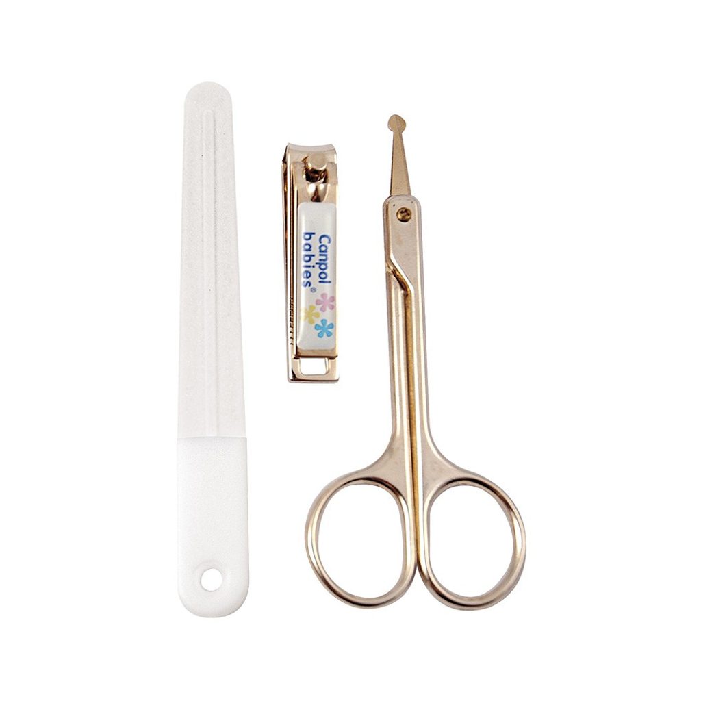 Nůžky, pilník a kleštičky pro snadnou a bezpečnou péči o nehty Vašeho dítěte. Nůžky s kulatou špičkou minimalizují možnost poranění dítěte při stříhání nehtů. Nehty zkrátíte kleštičkami a speciálně tvarovaným pilníkem upravíte jejich tvar. Aby jste minimalizovali možnost poranění dítěte, doporučujeme stříhat nehty během spánku dítěte.