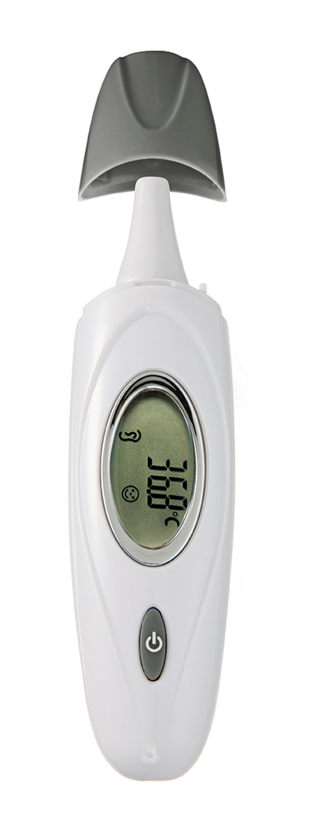 Teploměr lze využít nejen pro měření tělesné teploty, ale také teploty materiálu nebo okolního prostředí. Díky odnímatelnému nástavci lze teplotu těla snímat jak z ucha, tak i ze spánku měřené osoby. Optické a zvukové značení běžné a zvýšené tělesné toploty, společně s jediným tlačítkem umožňují velice jednoduchou obsluhu. Navíc má teploměr paměť až na 19 měření a zobrazuje aktuální nastavený čas.