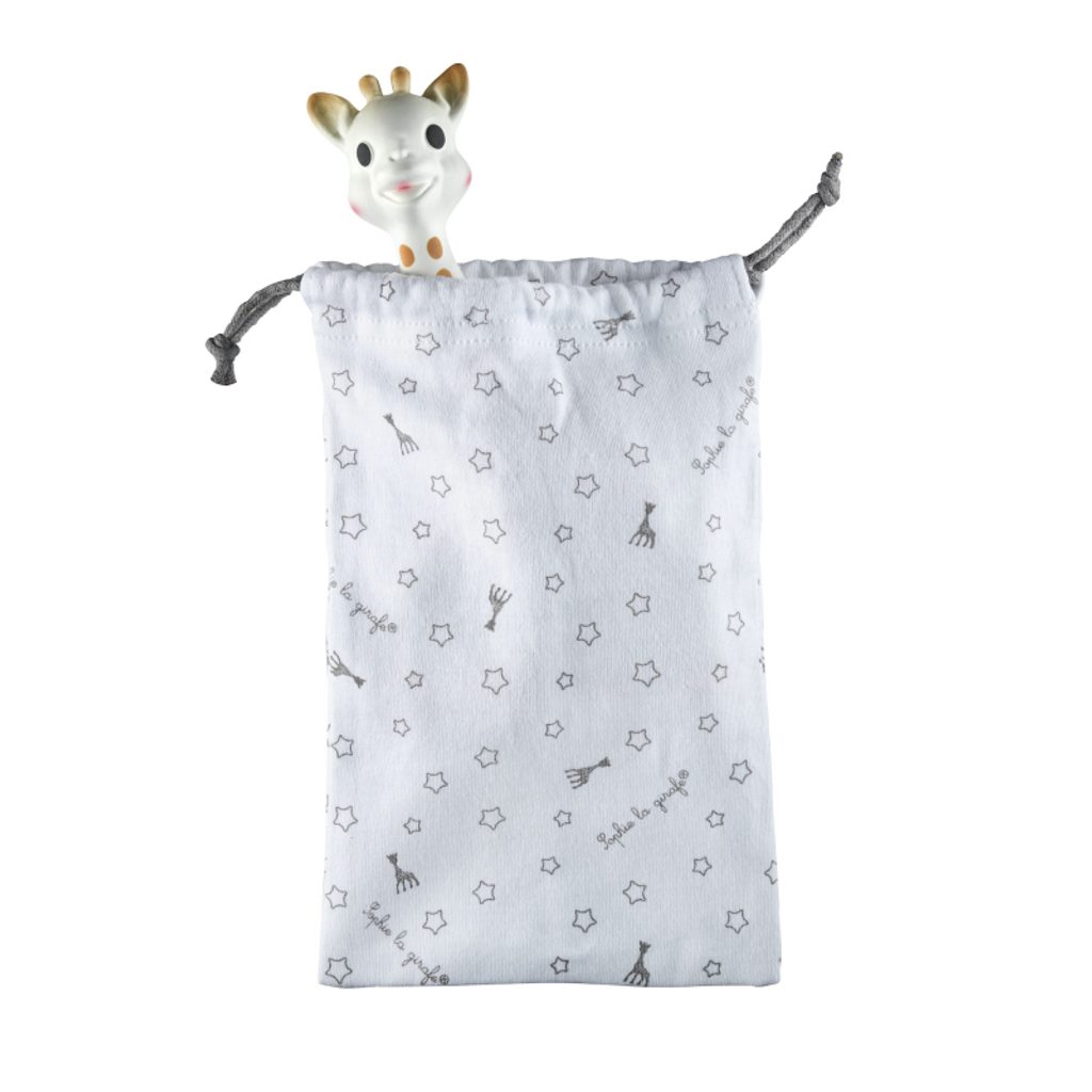Hračka žirafa Sophie v dárkovém balení spolu s úložným pytlíkem na žirafu.