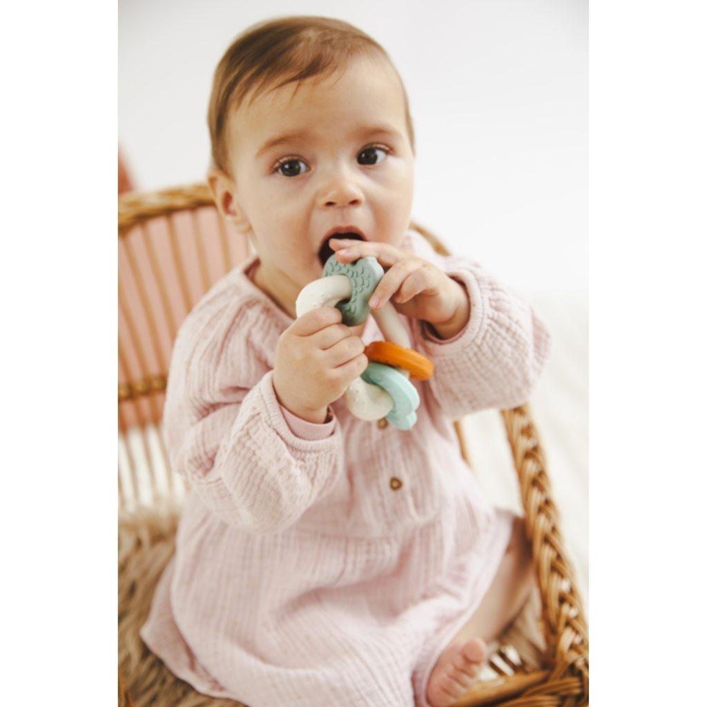 Obsahuje 3 roztomilé barevné klíčky, které snadno uchopí i malé dětské ručičky a svou velikostí i tvarem jsou ideálně přizpůsobené dětským ústům.