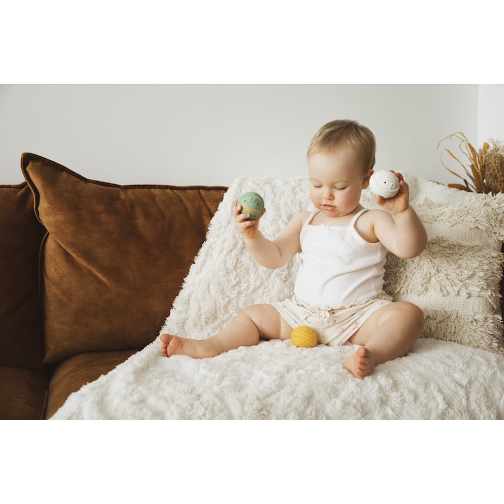 3 míčky s různými zvuky, které stimulují sluch dítěte!