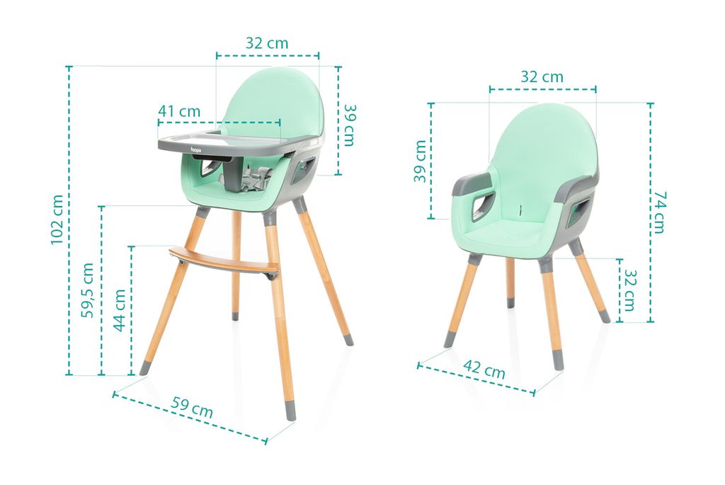 Bezpečná, praktická a moderní – to je dětská židlička ZOPA Dolce2. Je vhodná pro děti od 6 měsíců do 15 kg. Kombinace dřeva, kvalitního plastu a měkkých potahů dělá ze židličky pohodlného pomocníka pro každou příležitost. Na výběr je několik barevných variant v minimalistickém designu, díky čemuž židlička hravě zapadne do jakéhokoliv interiéru. Použít ji lze jako klasickou jídelní židli nebo po snížení výšky a odstranění pultu jako křesílko do dětského pokoje.