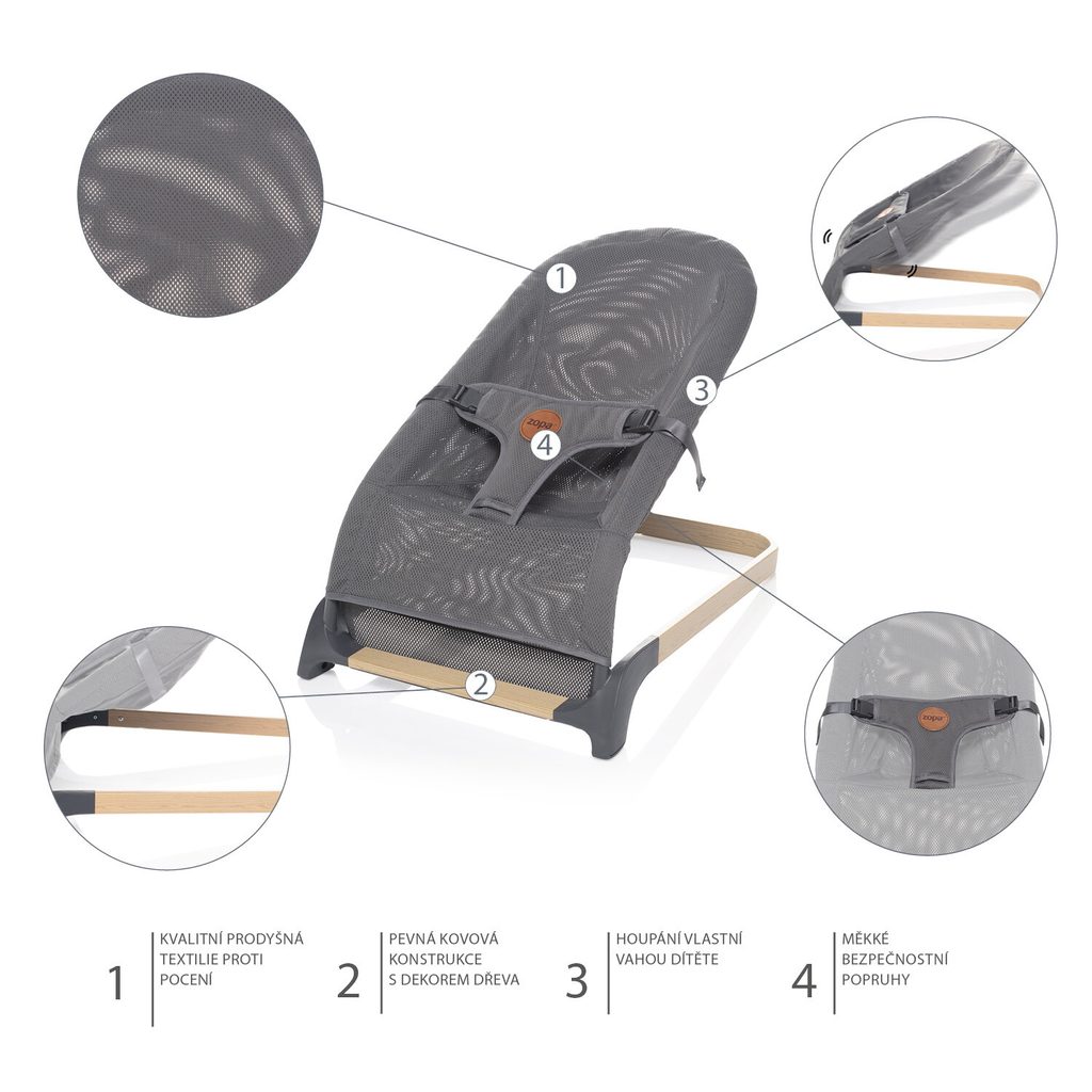 Lehačka Miura Air dovoluje být dítěti v centru dění, zatímco rodiče se mohou věnovat povinnostem či zábavě. Měkké popruhy zajišťují maximální bezpečí dítěte v lehačce, zatímco odpočívá nebo si hraje. Měkká prodyšná látka se systémem odvětrávání zabraňuje pocení miminka a zajišťuje komfort i v teplejších měsících.