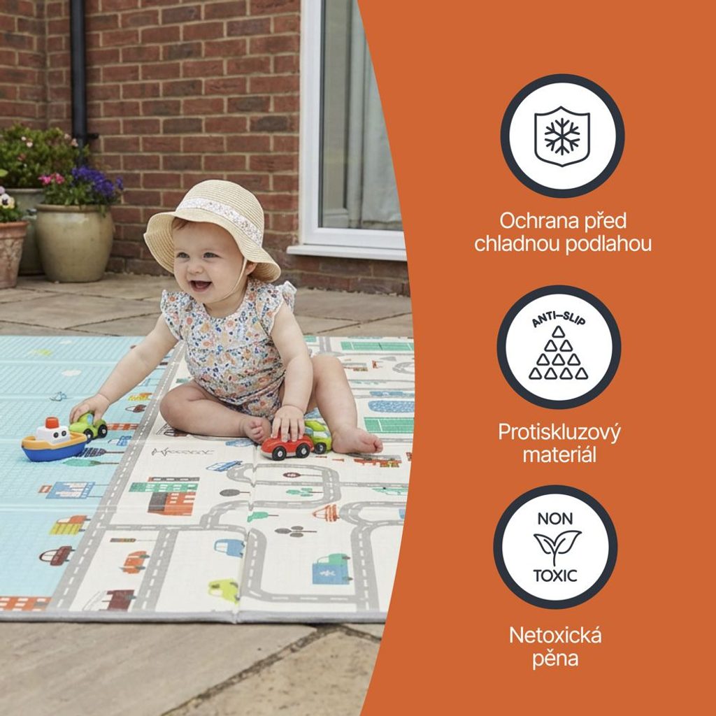 Je podložka vhodná pro novorozence? Ano. Měkká netoxická pěna a protiskluzová úprava ji dělají bezpečnou od prvních dnů – ať už jako podložku pro miminko, nebo jako hrací plochu pro starší děti.