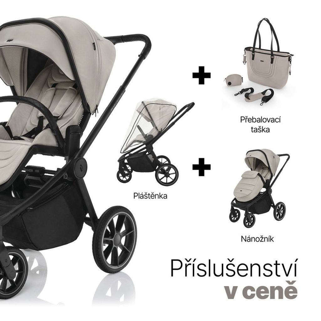 Kočárek umožňuje otočné sportovní sezení, které můžete nasměrovat po i proti směru jízdy. Velkou výhodou je výškově nastavitelné sezení i stříška, každá ve třech úrovních. Přizpůsobí se tak nejen výšce rodičů, ale i růstu dítěte.