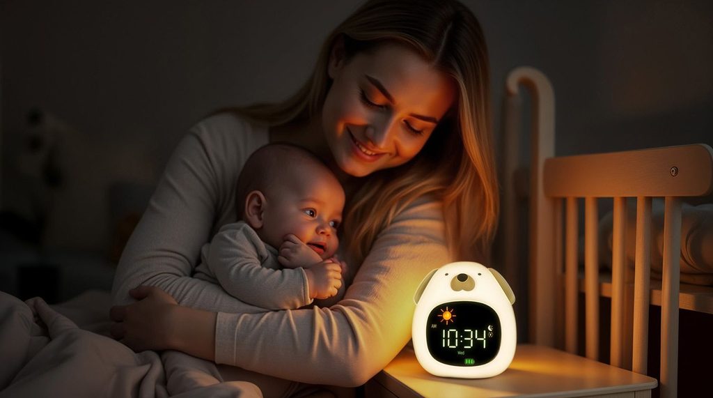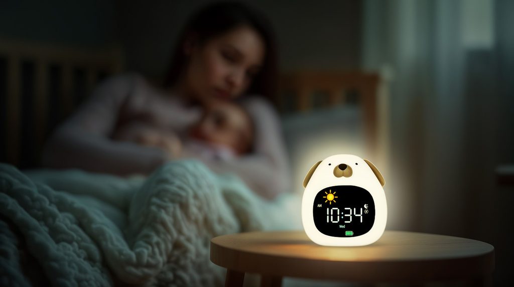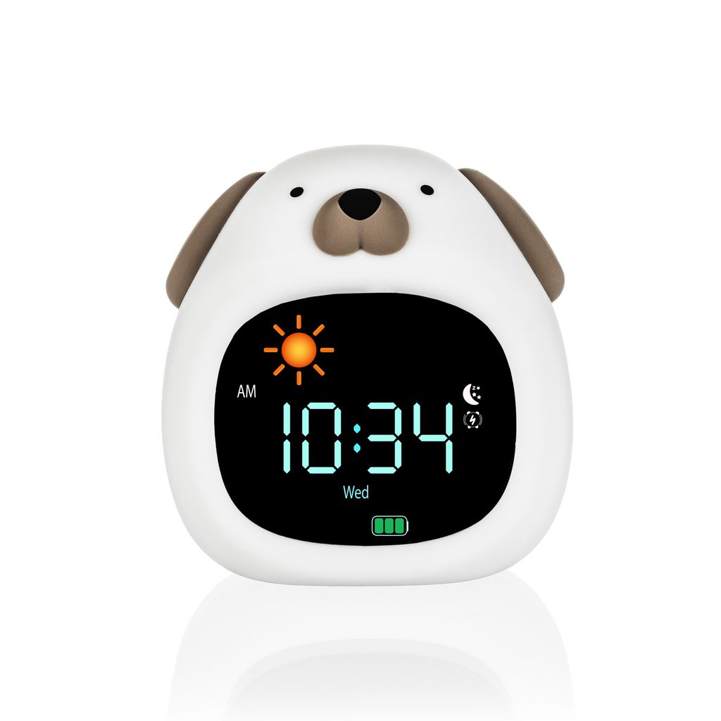 Roztomilý budík, noční světýlko a přehrávač zvuků v jednom. Pomáhá dětem s usínáním i ranním vstáváním díky světlu s měnícími se barvami, jemným melodiím a intuitivnímu ovládání. Ideální pomocník pro klidný spánek vašich nejmenších.