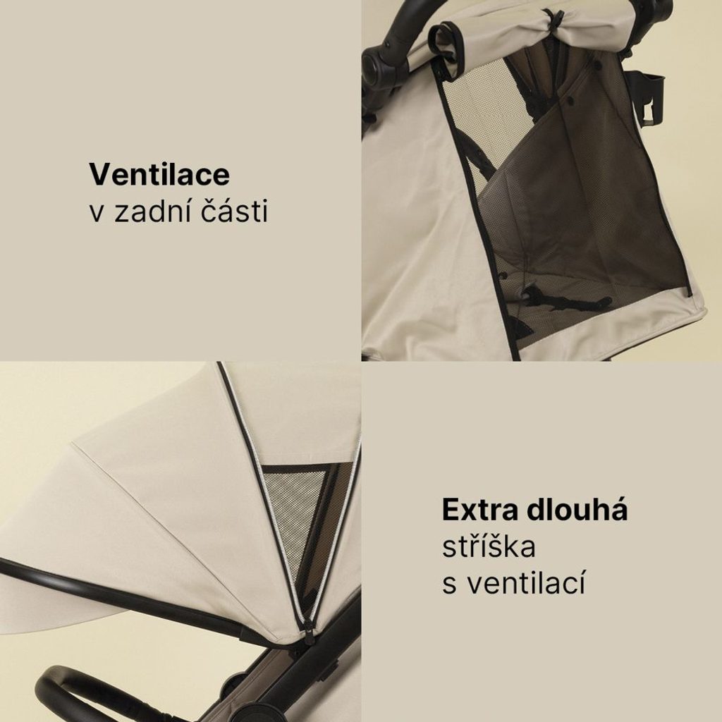 ✔️ Prodloužitelná stříška s větracím okénkem pro lepší ochranu v létě