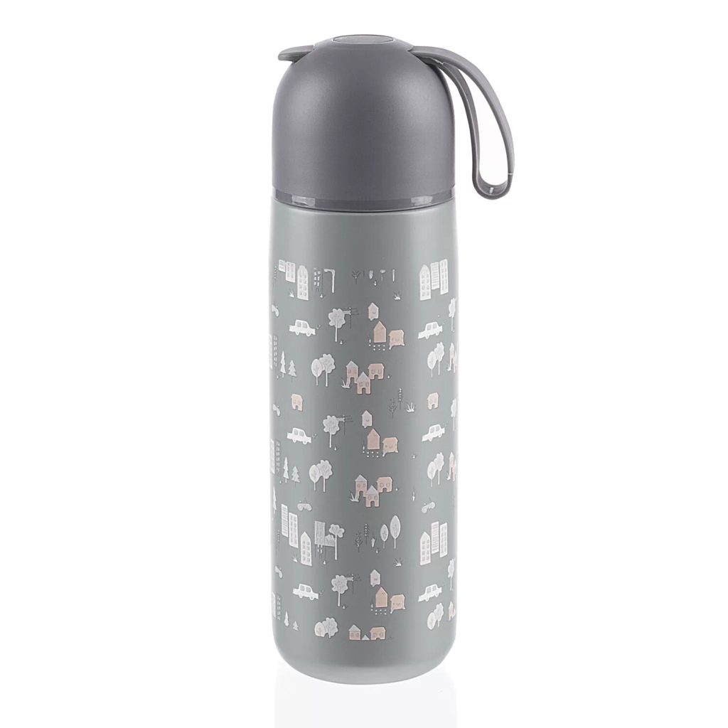 Kvalitní termoska na tekutiny o objemu 400 ml uchovává horké nápoje až 12 hodin, studené až po dobu 24 hodin. Je vyrobena z kvalitní nerezové oceli, která je odolná vůči korozi. Těsné víčko zajišťuje, že termoska neprotéká a vrchní uzávěr pro pohodlné nalévání se postará o to, abyste se nepolili ani při jízdě autem na nerovné cestě, taktéž si můžete být jisti, že se dítě neopaří tekutinou z termosky vzhledem ke dvojitému uzávěru. Víčko termosky lze použít jako hrníček.