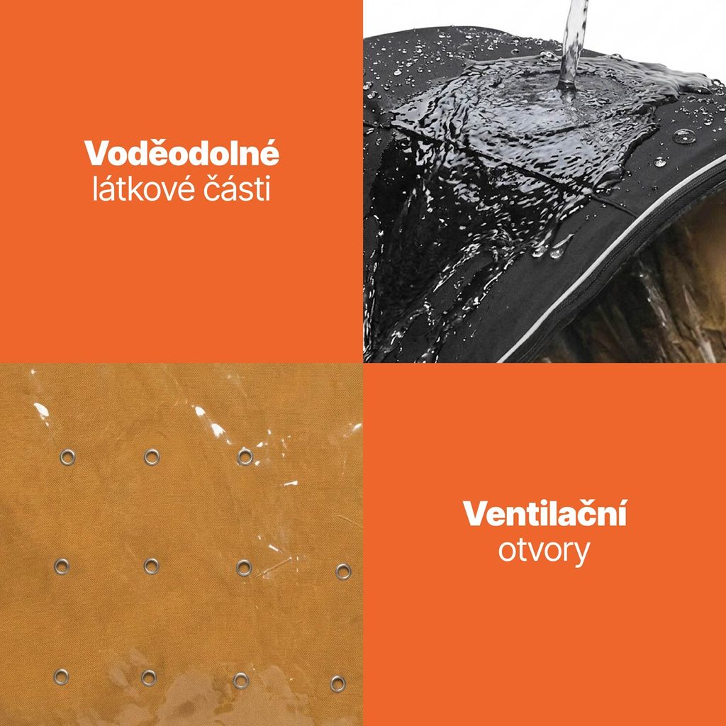 - 100% ochrana před deštěm a větrem – voděodolný materiál s pevnou konstrukcí drží tvar i při silném dešti. Žádné zatékání, žádné mokré miminko.