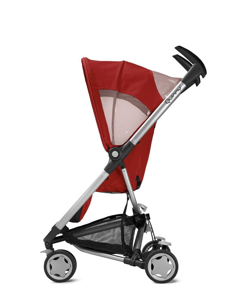 - Quinny Zapp je dodáván včetně sluneční stříšky, pláštěnky, držáku na slunečník