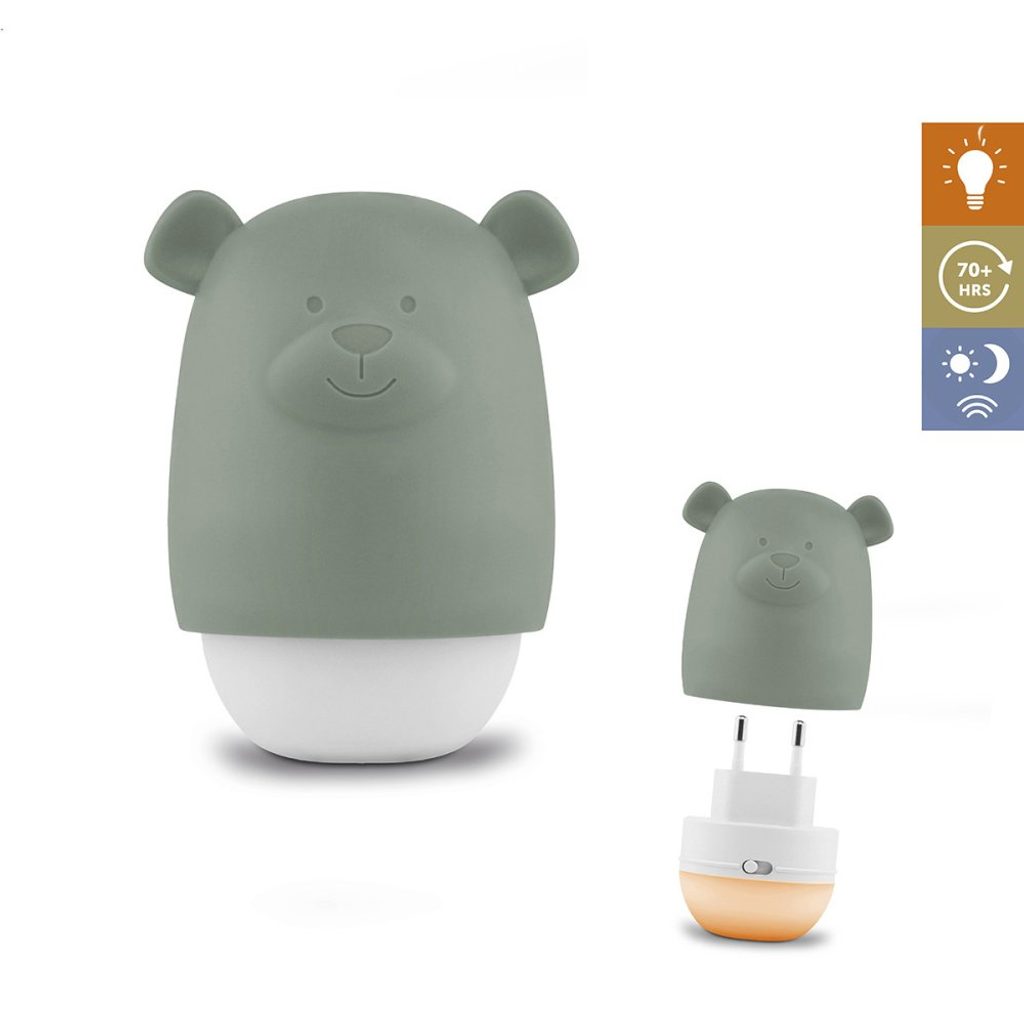Zazu Medvídek BENNY zelený - noční světlo se senzorem soumraku