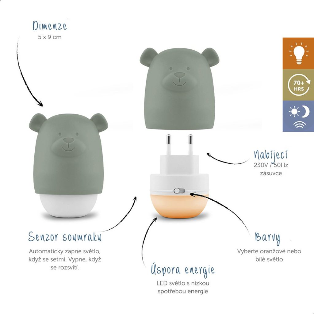 Medvídek BENNY je přenosné dobíjecí dětské noční světlo, které se automaticky zapne, když se setmí, a vypne, když se rozední.