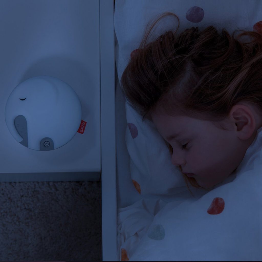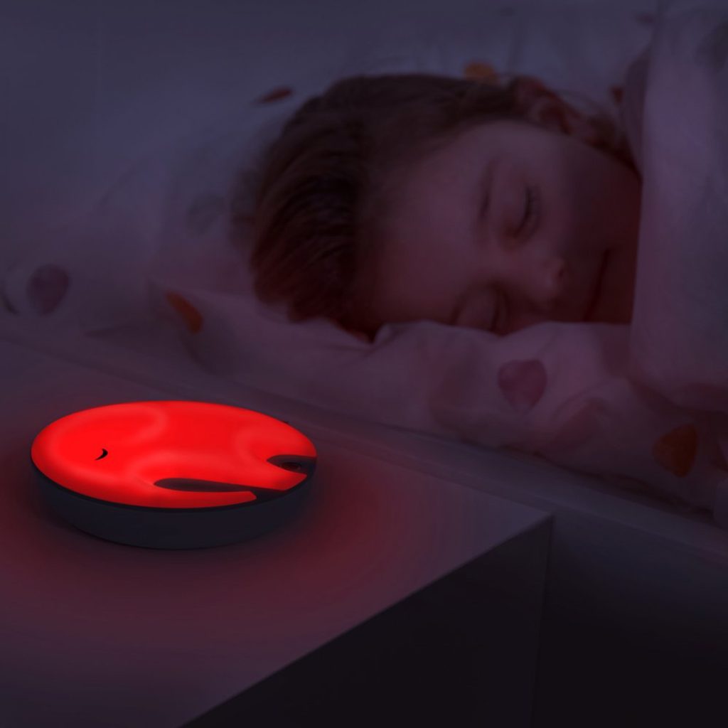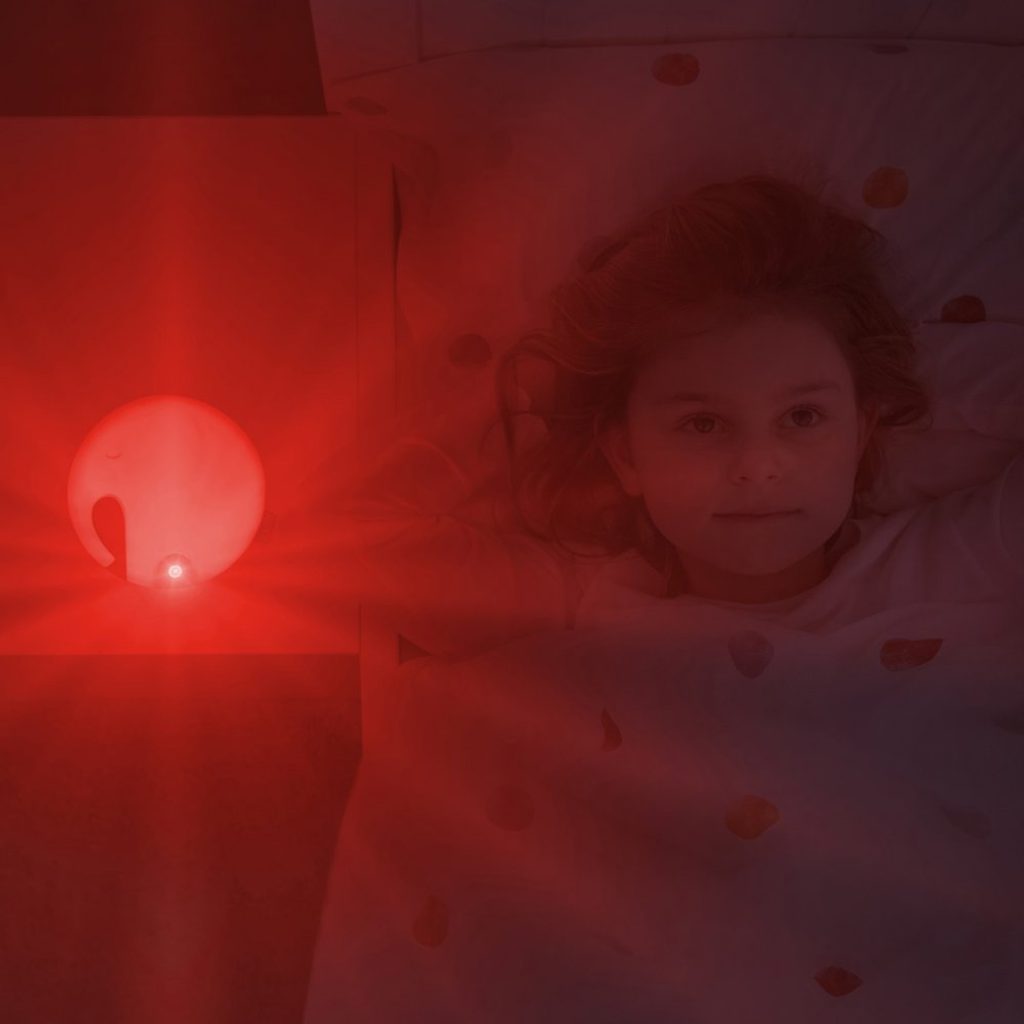 Poslouchání zvuku dechu slonice EMMY a sledování, jak se pulsní světlo zvětšuje a zmenšuje pomůže vašemu dítěti jednodušeji usnout.