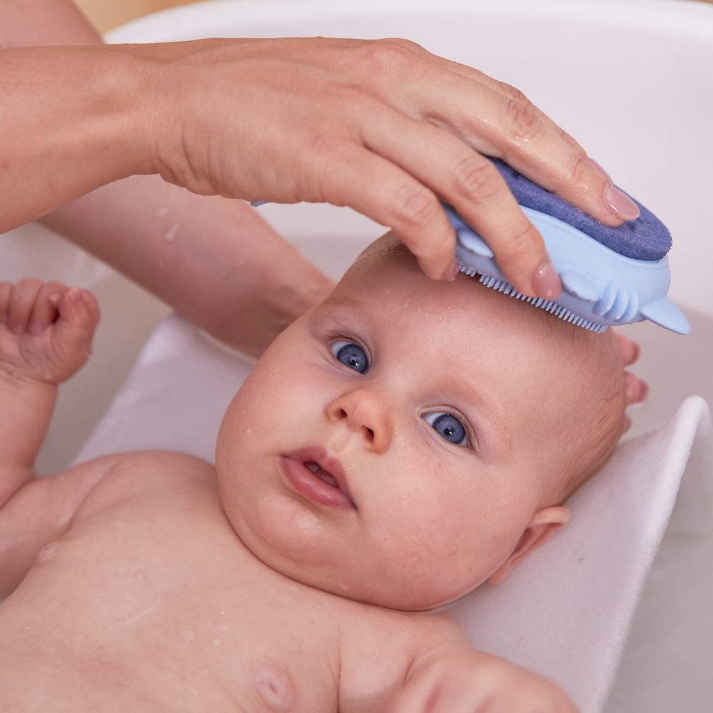 - měkké silikonové štětinky pomáhají exfoliovat jemnou dětskou pokožku a pomůže tak v péči při léčbě dětské seboreické dermatitidy
