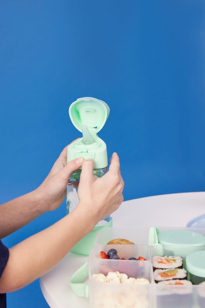 Tato lahvička od oblíbené australské značky b.box je navržena s ergonomickým tvarem a trojúhelníkovou základnou, která skvěle padne do malých dětských ručiček. Silikonové brčko umožňuje pohodlné pití i při mírném naklonění lahvičky. Víčko je vybaveno držátkem pro snadné nošení nebo zavěšení na batoh či kočárek. Lahvička se snadno otevírá po zmáčknutí tlačítka. Brčko má ventil, který zabraňuje samovolnému vytékání tekutiny, ale lahvička není označena jako netekoucí. Pití vyžaduje, aby dítě brčko jemně sevřelo mezi jazykem a patrem nebo rty.