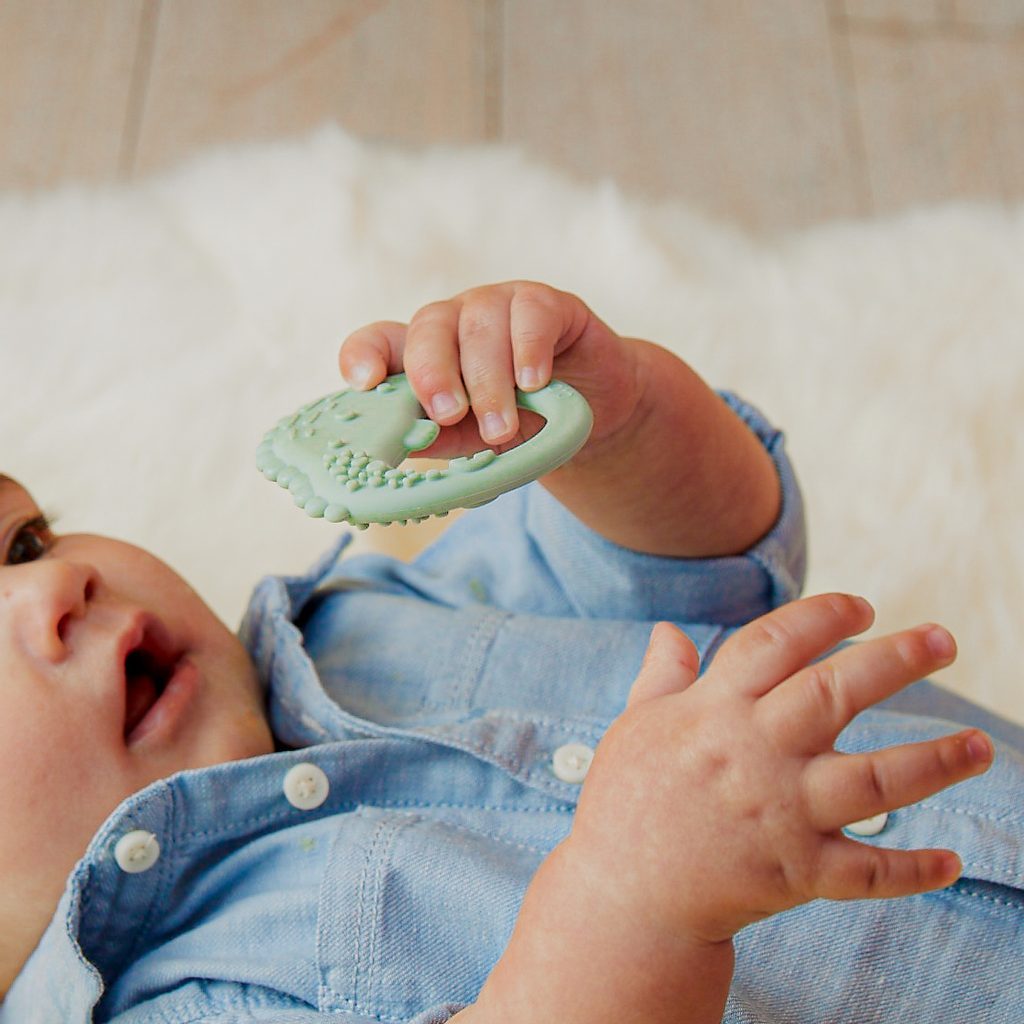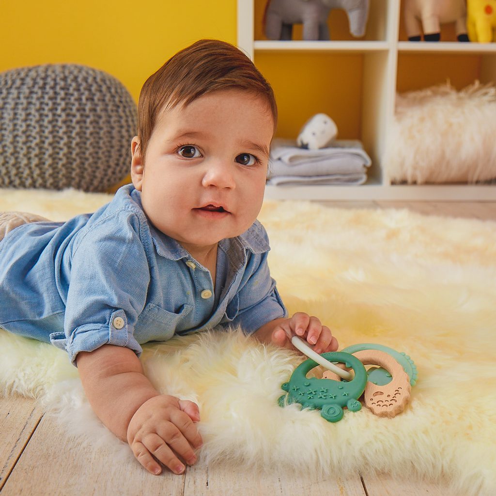 Kousátko je vhodné pro děti od 3 měsíců věku a bude jej provázet od prořezávání prvních zoubků až k těm posledním. Měkký silikon je ideální pro první fáze prořezávání zoubků. Na kousátku vyrobeného ze středně tvrdého silikonu jsou výlisky a malé výstupky, aby s ním dítě dosáhlo dále do pusinky a ulevilo bolesti při prořezávání zoubků umístěných dále v pusince. Dřevěné kousátko je navrženo tak, aby bylo možné jej kousat až na zadních zubech.