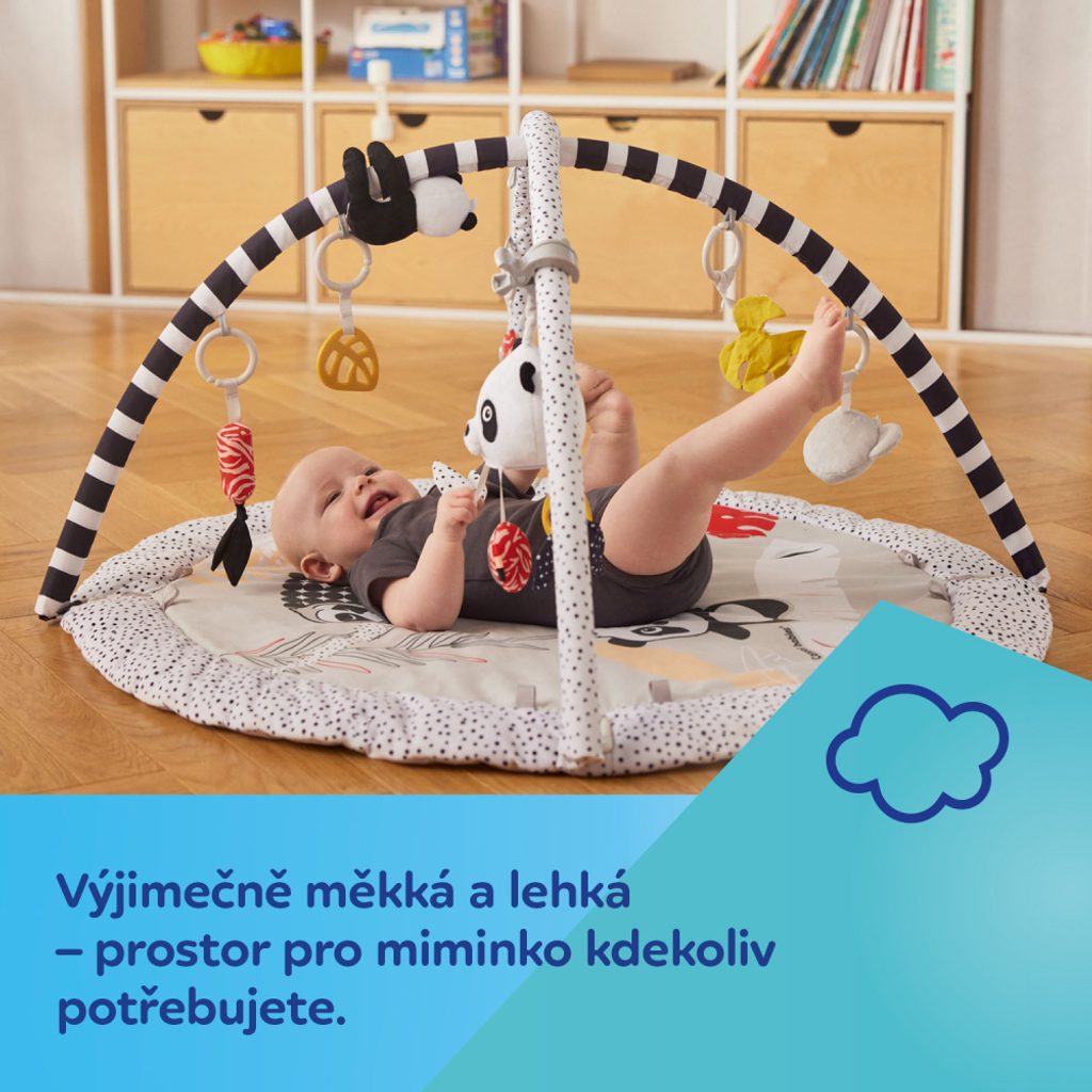 Podložka je lehká a snadno se sroluje (po odepnutí oblouků) – ji můžete snadno přenášet nebo vzít s sebou na cesty, díky čemuž budete mít vždy bezpečné, čisté místo a vytvoříte tak prostor na hraní pro miminko kdekoli potřebujete.