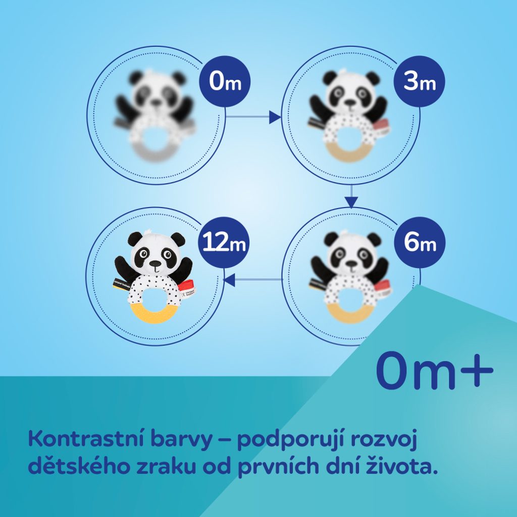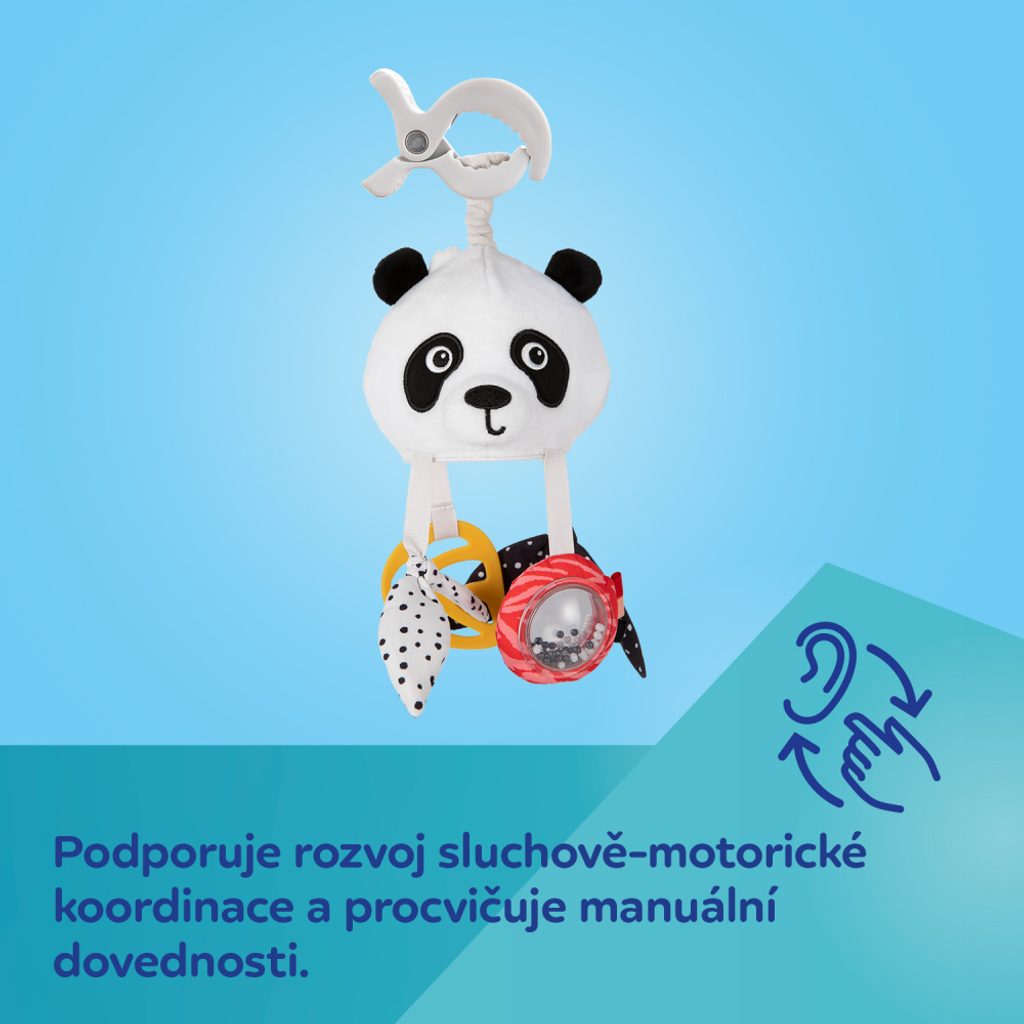 Roztomilá panda poskytne vašemu dítěti zábavu doma, na procházce i na cestách.